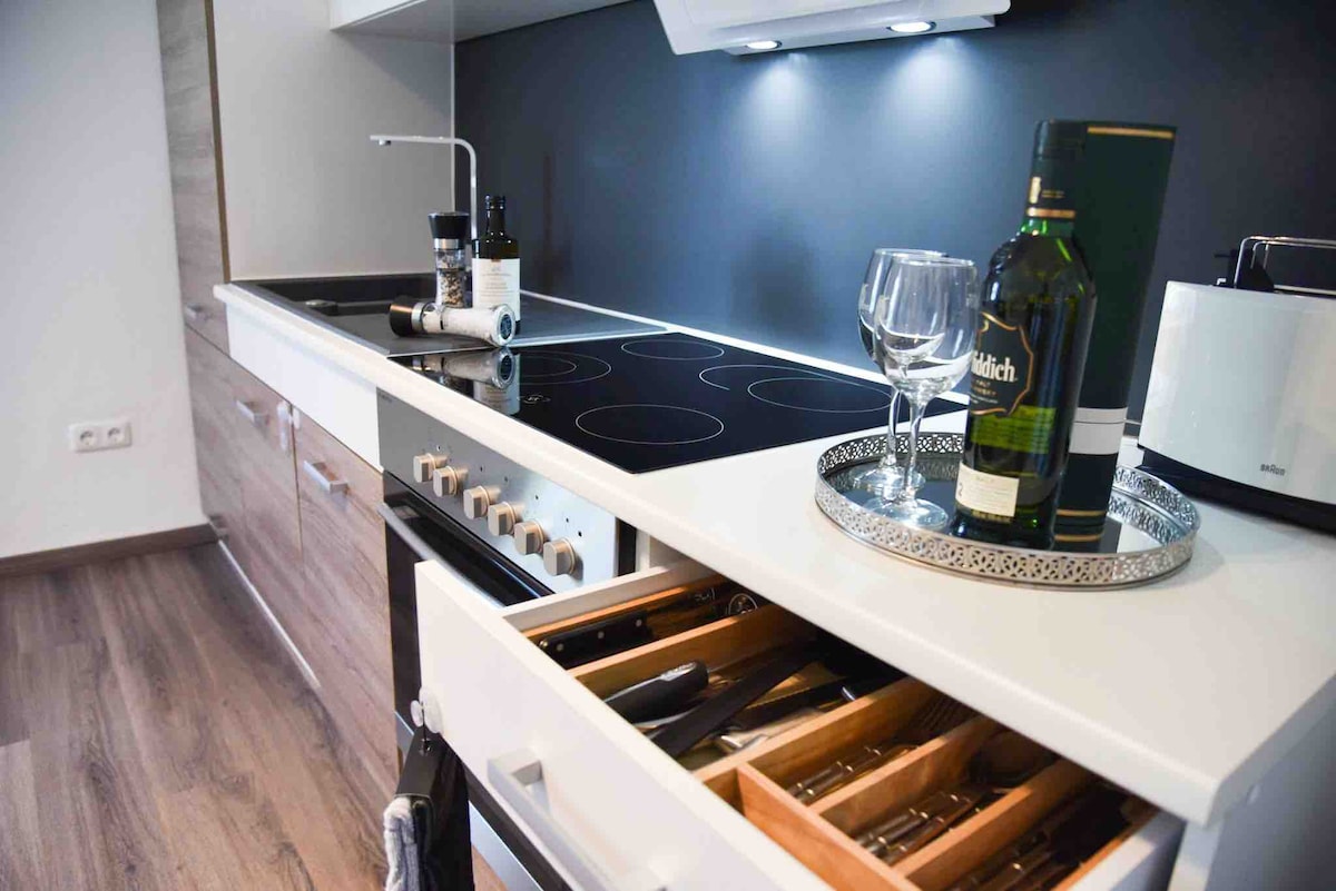 Appartement moderne directement sur le Lech. L'appartement se compose d'une cuisine moderne , d'une chambre (lit double), d'une salle de bains avec douche et toilettes, et d'une entrée avec penderie. L'appartement est situé en retrait dans la cour/jardin ou sur le Lech et entièrement au 1er étage. Au-dessus du Lech, vous pourrez profiter d'une vue romantique sur l'ancien monastère de St.Mang et le Hohe Schloss à Füssen. Shopping, promenades, sorties au restaurant... possible sans moyen de transport.