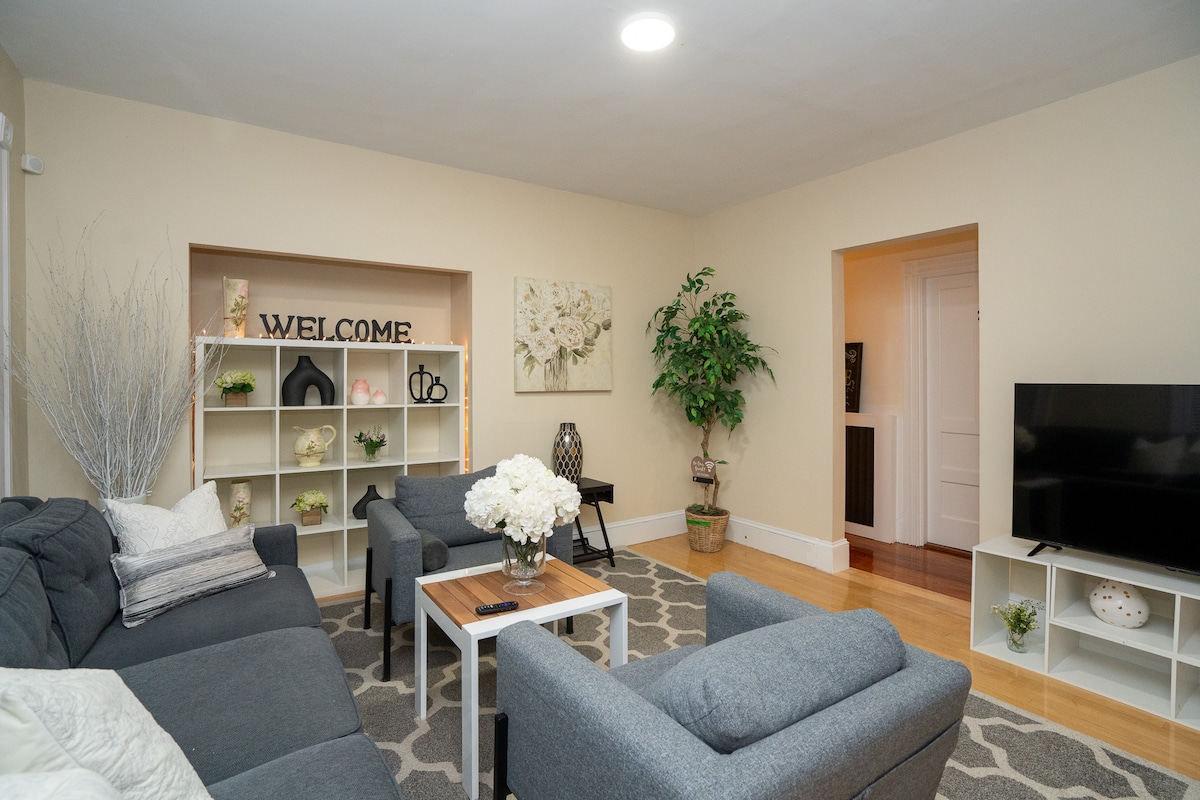 Bienvenue dans cet appartement élégant et rénové de 2 chambres et 1 salle de bain qui offre tout ce dont vous avez besoin pour vous détendre, vous relaxer et vous sentir comme chez vous. Il est parfait pour les familles, les couples, les infirmières en déplacement et les voyageurs d'affaires. Cette maison se trouve à quelques kilomètres du centre-ville de Boston, des plages locales, de l'aéroport Logan, de Fenway Park, du casino Encore, des universités et des hôpitaux. Il est situé à distance de marche du centre commercial de South Bay et de la gare de Newmarket. Ce sera un plaisir absolu de vous accueillir, vous et vos voyageurs.