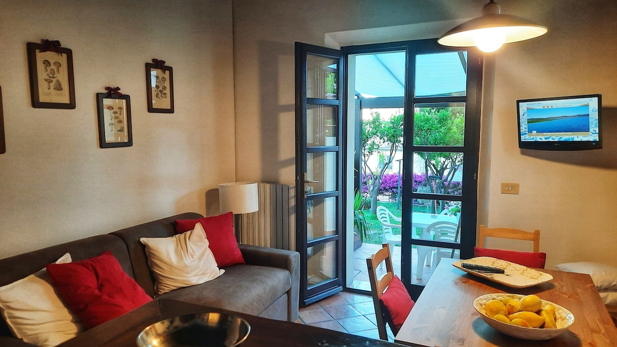 Delizioso appartamento arredato con cura, in stile etnico, provvisto di ogni comfort, in un casolare appena ristrutturato secondo i principi della bioedilizia, immerso nella macchia mediterranea del più bel versante dell'isola d'Elba, con vista mozzafiato sull'arcipelago toscano e sulla Corsica, a 250 m sul livello del mare, dominante la spiaggia di Cavoli. L'appartamento è composto di soggiorno con angolo cottura e divano-letto per due persone, camera matrimoniale e bagno con doccia e ampio spazio esterno attrezzato per pranzare e prendere il sole. Il luogo è raggiungibile con una strada sterrata di 2,5 km dal paesino di San Piero in Campo (fin dove arrivano i mezzi pubblici), distante pochi minuti di macchina dalle spiagge più incantevoli dell'isola (Cavoli, Seccheto, Fetovaia) e dal centro turistico e commerciale di Marina di Campo. E' consigliabile disporre di un mezzo proprio. La casa è immersa nella tipica macchia mediterranea alternata a grandi e suggestive scogliere di granito. Il grande giardino è recintato, contiene un orto e un uliveto. Non vi sono altre abitazioni nei dintorni. Intorno alla località si snodano i più suggestivi sentieri per gli amanti del trekking e della mountain bike. Ideale per chi è in cerca di silenzio, relax, aria pura, e ama la natura e i luoghi un pò speciali. I padroni di casa potranno aiutarvi per ogni evenienza e perplessità. BREATHTAKING VIEW ON THE ARCHIPELAGO Charming apartment,furnished in ethnic style,with every comfort,in an old cottage just renovated according to the bioarchitecture,amidst the Mediterranean bush in the most beautiful part of Elba island with breathtaking views on the Tuscan archipelago and (email hidden) a.s.l.,overlooking famous Cavoli beach. The apartment has a living room with kitchenette and divan bed for two persons,a double bedroom and a bathroom with shower and a large outside patio for eating and sunbathing. You can reach the place through a 2,5 Km dirt road from San Piero in Campo,where pubblic transport ends,and from where ,in few minutes by car you can get to the best beaches of the island (Cavoli,Seccheto,Fetovaia etc.),and to the touristic and service centre of Marina di Campo. It's better to have your own car or motorbike(you can rent it anywhere on the island). The house is surrounded by the typical mediterranean bush scattered with huge granite cliffs. The large garden has an olive grove and a vegetable garden. The place is secluded and there are no other houses in the surroundings. It's an ideal place for trekking and mountain biking and lovers of relax,peace,nature and special places. Your host are ready to help for any need and request.