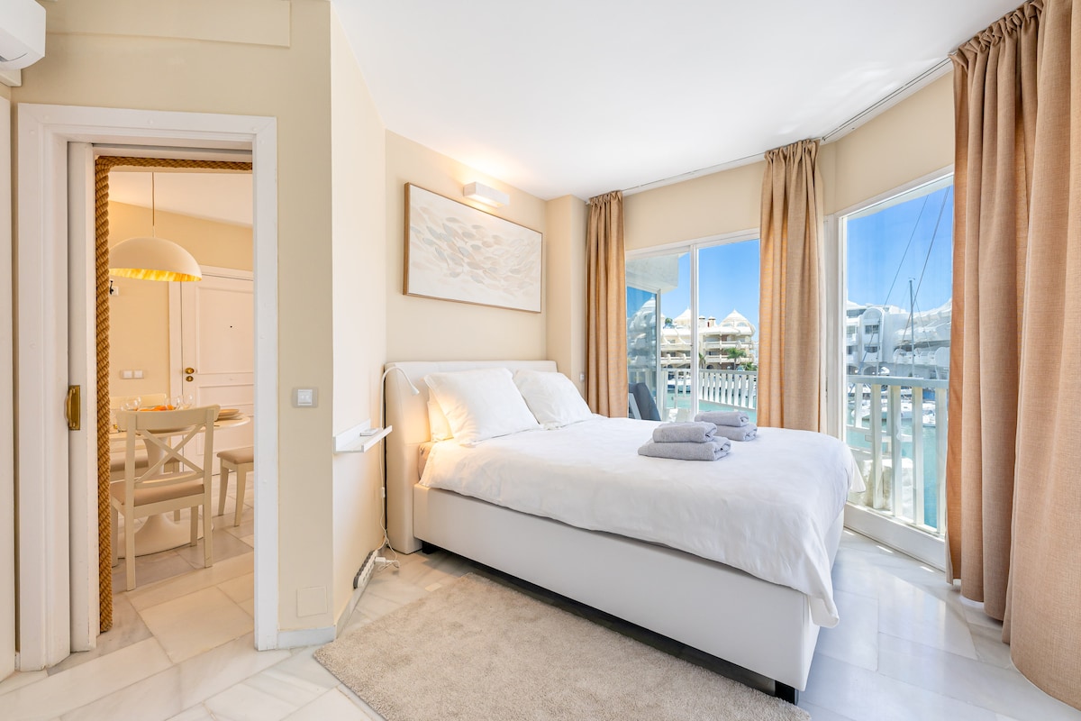 Appartement haut de gamme dans l'exclusive Puerto Marina, avec deux superbes terrasses et une vue imprenable, des meubles entièrement rénovés et de qualité. Vous pourrez profiter de la grande promenade, avec d'excellentes plages et d'innombrables restaurants. Si vous souhaitez vous reposer entouré de toutes sortes de services au cœur de la ville, c'est votre logement ! Nous sommes impatients de vous accueillir ici, avec un service exclusif toujours à votre disposition, afin que votre expérience soit toujours mémorisée :)