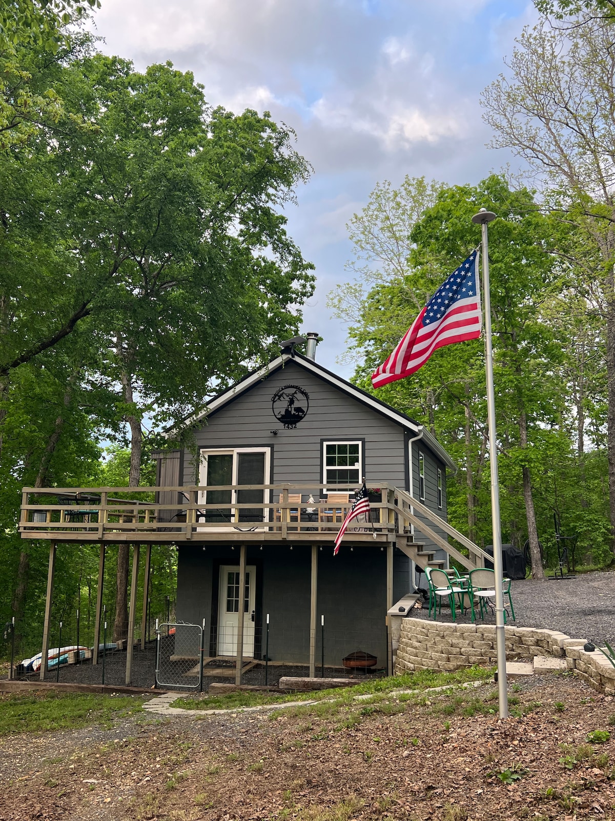 Profitez des montagnes Ozark de l'Arkansas dans un chalet confortable. Notre cabane se trouve sur 20 acres boisés juste à côté de la route d'accès de South Maumee à la rivière Buffalo, la première rivière nationale d'Amérique. Savourez votre café du matin et regardez le lever du soleil depuis le porche grillagé. Ou faites griller des guimauves et observez les étoiles tout en étant assis autour du foyer extérieur. Le chalet est parfait pour une escapade romantique ou comme base pour flotter sur la rivière Buffalo qui se trouve juste en bas de la route.