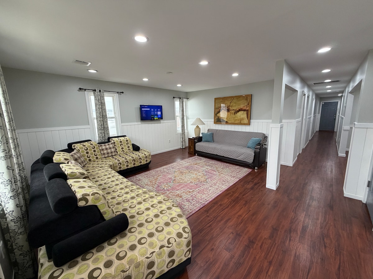 Amenez toute la famille à Seaside Heights ! Situé à 1 pâté de maisons de la plage, avec 2 places de parking privées couvertes sur la propriété. Idéal pour une escapade familiale. En hiver, profitez de la belle plage tranquille. Et en été, rejoignez l'expérience passionnante de la plage de la promenade. Idéalement situé à 5 min de marche de la promenade et de la jetée de Seaside Heights, de Casino Pier Ferris Wheel, du parc aquatique Breakwater Beach et plus encore ! Il y en a pour toute la famille !