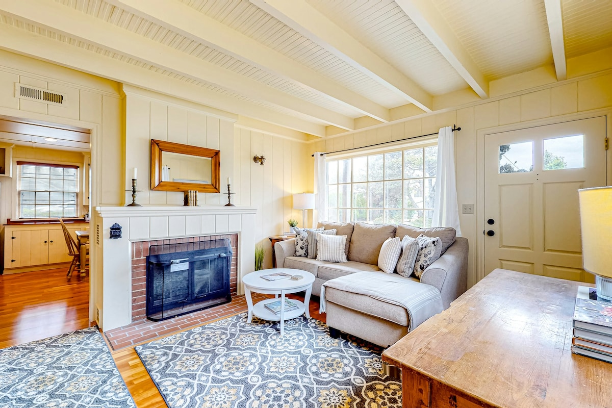 Explorez Seaside depuis notre charmant chalet, situé à l'extrémité nord de l'emblématique promenade de Seaside. Cet emplacement privilégié vous offre une retraite tranquille à quelques pas d'une plage tranquille. Une courte promenade le long de la promenade vous mènera au cœur de la ville, où vous pourrez profiter d'une variété de restaurants et des attractions locales. Idéal pour les familles et les couples, le chalet dispose d'intérieurs élégants et confortables, de lits confortables avec des draps Brooklinen luxueux et d'une cheminée accueillante.