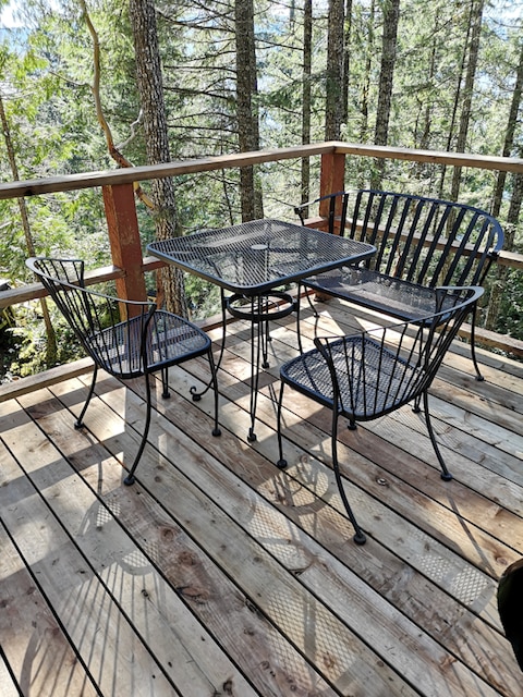 Ce chalet unique au sommet des arbres est situé à 110 pas dans les nuages au bout de la route dans le village calme de Tuwanek. Profitez d'une intimité et d'une solitude totales, et immergez-vous dans le jacuzzi perché au sommet de la propriété. Le chalet dispose d'une chambre et d'un loft, avec une literie et des draps confortables. Tout est fourni, y compris une cuisine bien approvisionnée avec tous les ustensiles de cuisine dont vous aurez besoin. Le chalet est parfait pour une escapade romantique ou des vacances en famille. Licence Sechelt 2024.