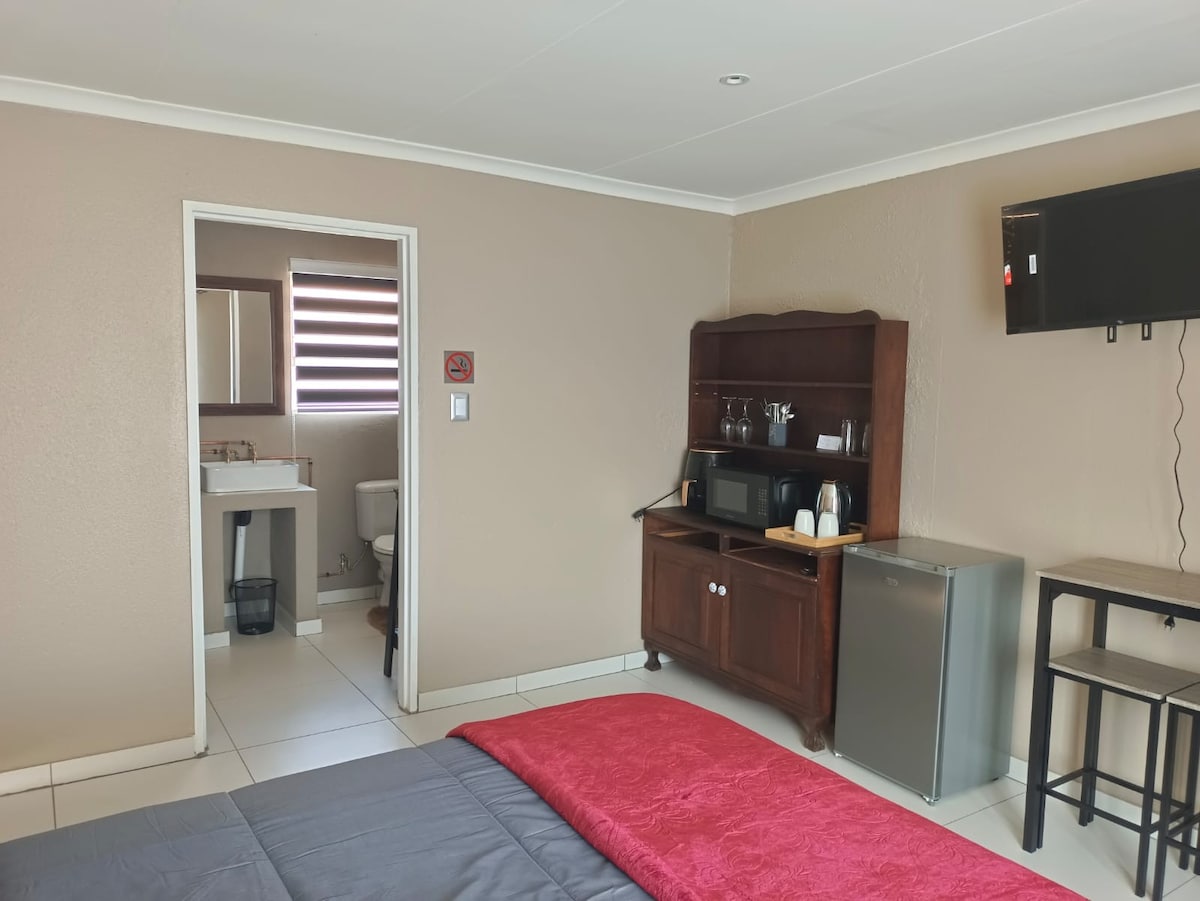 Le studio est situé au rez-de-chaussée et dispose d'un lit double et d'une douche attenante. Le design ouvert avec des finitions décoratives élégantes comprend une kitchenette entièrement équipée avec une cuisinière à 2 plaques, un réfrigérateur, un four à micro-ondes, une poêle à braai, une télévision avec DStv et une connexion Wi-Fi.