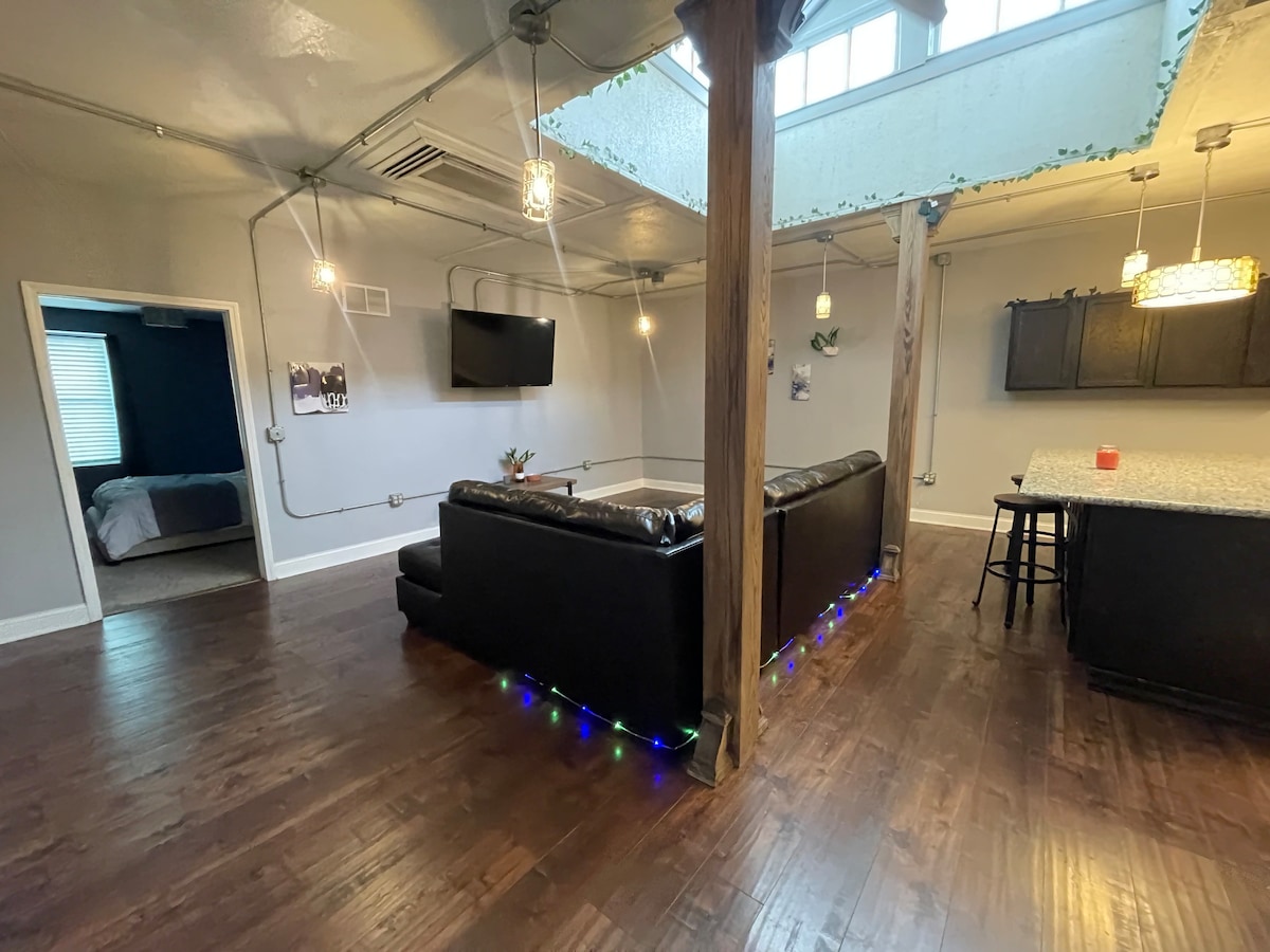 Bienvenue dans le quartier Delano du centre-ville de Wichita, KS, affectueusement appelé les TIC par les habitants. Un magnifique loft élégant qui était complet en 2024. Deux chambres avec deux salles de bain complètes, cuisine entièrement équipée avec tous les appareils. Lave-linge et sèche-linge de grande taille...toutes les fournitures fournies. Le parking se trouve sur le côté de la porte de Martinson ou sur le terrain hors rue. ABSOLUMENT INTERDIT DE FUMER. OU DE RASSEMBLEMENTS.