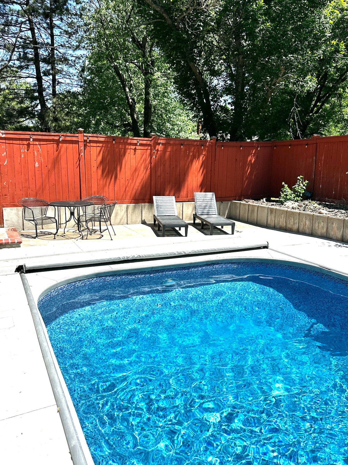 Nouvelle annonce. Hôte Airbnb expérimenté. Tout l'étage principal de la maison. 2 chambres, 2 salles de bains et une piscine (fermée pour l'hiver). Stationnement pour remorque/camping-car pour 50 $ par nuit. Proche de Wichita, de la base aérienne de McConnell et des installations de Boeing Air Capital. Cuisine complète. Internet par fibre 2,5 Gbs. TV 4K avec services de streaming. Lave-linge et sèche-linge avec lessive. L'hôte habite dans l'appartement du sous-sol avec une entrée séparée qui est séparée par une porte verrouillée. Il n'y a aucun espace partagé à l'intérieur.