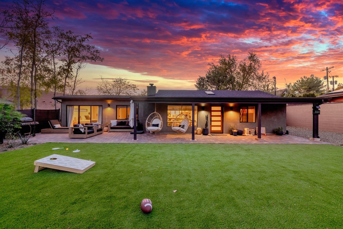 Welcome to The Boho, a Sedona retreat with all the amenities! Enjoy a 4 bedroom 2 bath house complete with an 8-person sauna, yoga studio, pool table and secret room (have fun finding it!) Nestled in a quiet neighborhood with peaking views of the red rocks, you can dine outside on the patio or inside, relax in the grand room for a late night movie or pool game. You are minutes from hiking trails, coffee shops, restaurants and more. Whatever your getaway needs, this house is here to help!