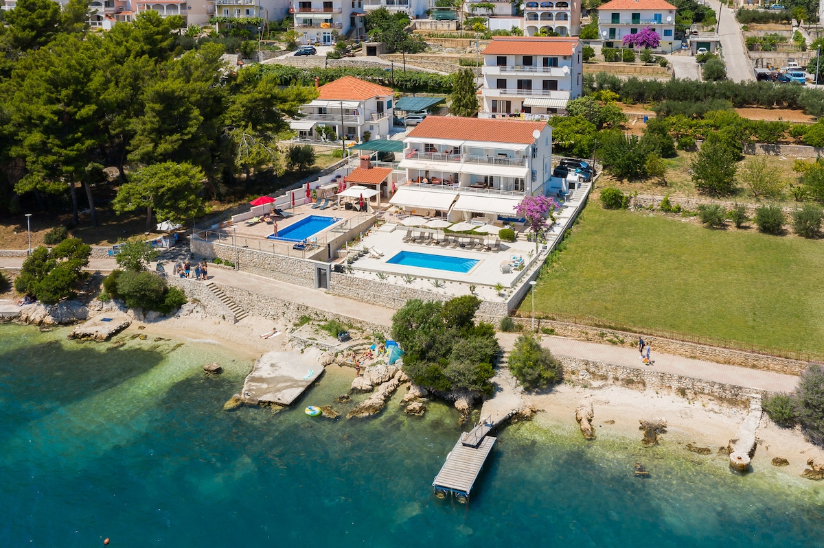 Les appartements Sea sont situés dans un emplacement parfait à proximité de Trogir, directement sur la plage, avec la meilleure vue sur la magnifique mer Adriatique et les îles. C'est un endroit paisible et calme. Devant la maison se trouve une promenade en bord de mer de 3 kilomètres de long, qui contient des hôtes sympathiques et des aliments sains dans un petit restaurant méditerranéen. Les deux appartements sont très bien situés et très facilement accessibles depuis Trogir (belle vieille ville avec un grand choix de restaurants à des prix raisonnables) et Split via des bateaux taxis.