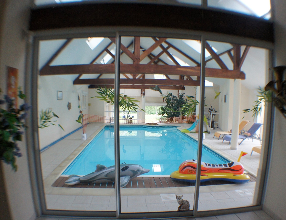 Gite, piscine couverte, accès direct de la maison.