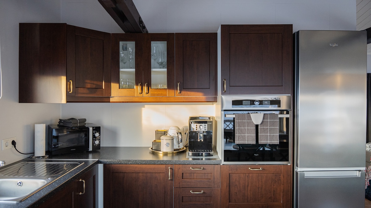 Vous avez l'usage exclusif de cet appartement pour tout votre séjour chez nous. Vous ne partagerez rien avec d'autres voyageurs. Ce grand studio moderne extra large est rempli des tons chaleureux du bois. Il a été soigneusement conçu et offre un appartement confortable pour 4 personnes. La grande table à manger offre l'endroit idéal pour recevoir des invités. La cuisine complète vous permet de cuisiner comme à la maison : tout ce dont vous avez besoin pour vous sentir chez vous.