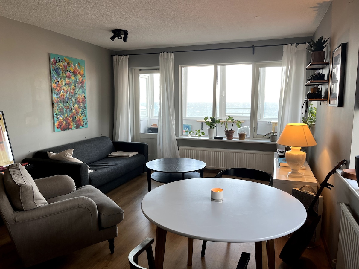 Appartement lumineux et confortable au 4e étage avec vue imprenable sur la mer et la montagne. Idéal pour les couples, les amis ou les petites familles, il peut accueillir jusqu'à 4 personnes (1 lit double + 1 canapé-lit). À quelques pas du phare de Grótta et à 30–40 minutes à pied (ou 5 minutes en voiture) du centre-ville de Reykjavík. Ce quartier paisible et convivial dispose d'une épicerie, d'une salle de sport, d'une piscine, d'une boulangerie, de cafés et plus encore à seulement 5 minutes. Comprend une cuisine complète, un balcon privé, le Wi-Fi, une télévision connectée, un lave-linge, un sèche-linge et un parking gratuit.