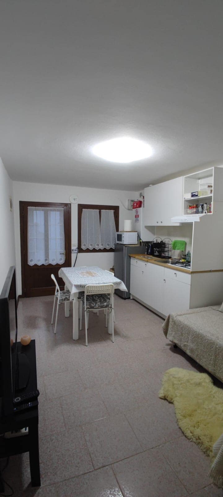 Bel appartement au rez-de-chaussée avec terrasse privée, entouré par la nature avec un immense jardin à partager avec d'autres voyageurs, y compris des bains de soleil et un espace barbecue. Entièrement équipé avec kitchenette, une grande chambre double, une salle de bain (douche) équipée d'un sèche-cheveux, de serviettes et de mousse de bain. TÉLÉVISION PAR SATELLITE et WI-FI gratuit. Parking privé pour vélos et voitures. Laudry en libre-service dans l'espace commun disponible.