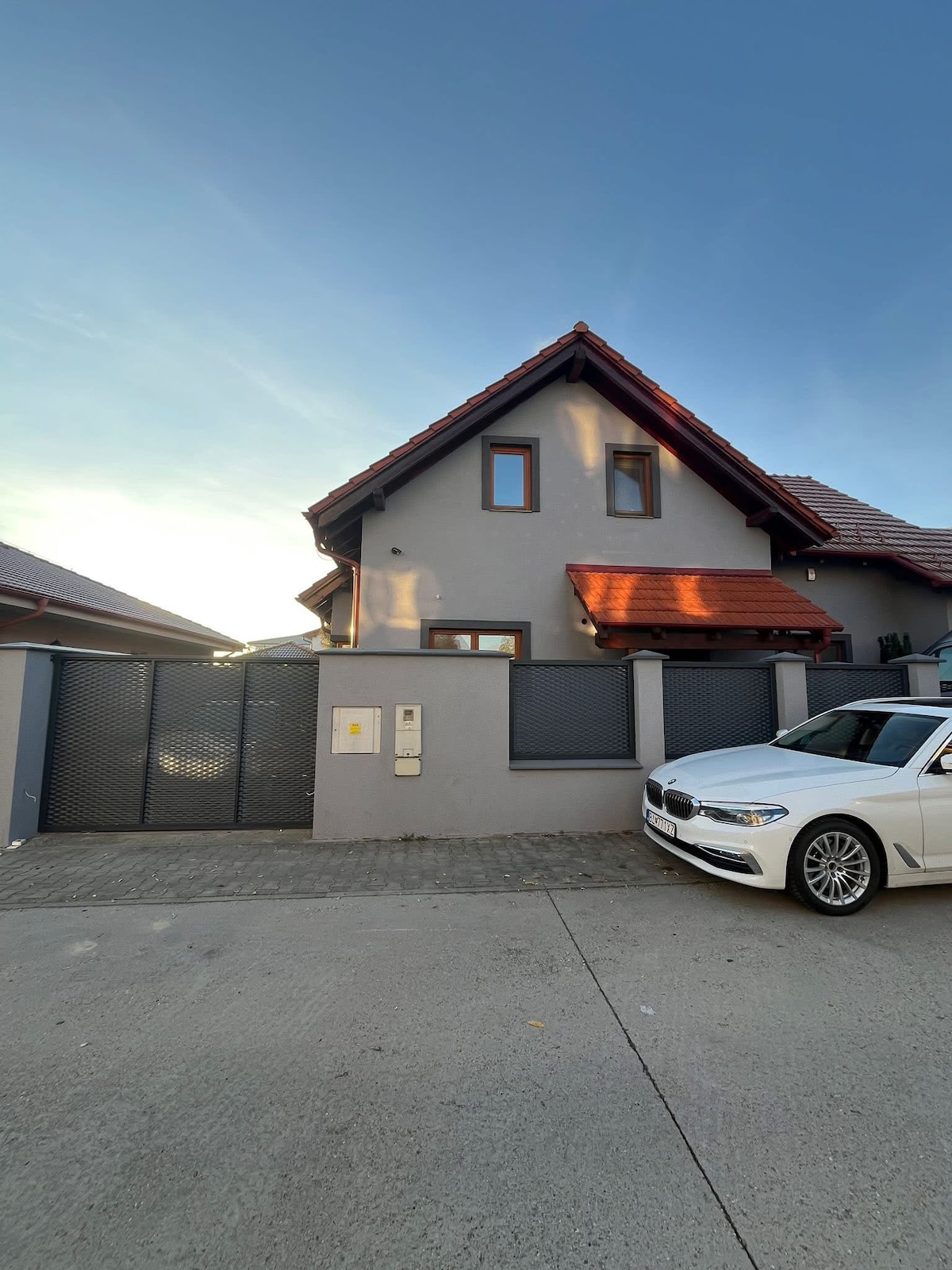 Belle maison de 3 pièces (maison mitoyenne) nouveau bâtiment dans un endroit calme. La maison dispose de son propre parking devant la maison pour trois voitures. La maison dispose d'une belle terrasse privée de 12 m2 et d'un jardin privé de 42 m2. Il y a des sièges de jardin modernes sur la terrasse. Très bonne accessibilité au centre de Bratislava à 20 min en voiture et connexion rapide à l'autoroute en environ 5 min. Vienne est à 1h en voiture. Il est à 19 minutes en voiture de la ville de Senec, où il y a un parc aquatique et des lacs ensoleillés. À proximité, vous trouverez des épiceries, des restaurants, des cafés, des boutiques, une pharmacie.