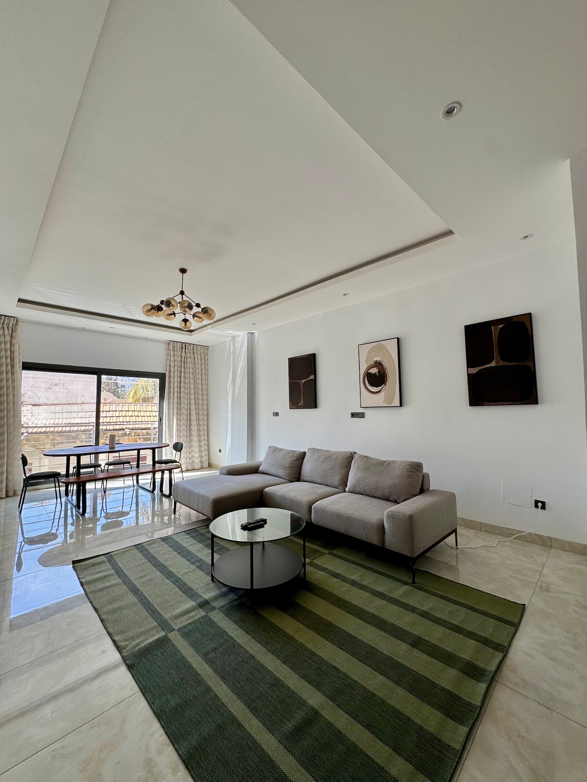 Oubliez vos soucis dans ce somptueux appartement se trouvant au 4ème étage avec ascenseur dans une résidence sécurisée. Sa décoration époustouflante vous fera apprécier votre séjour dans un confort total.. L'appartement est totalement climatisé, équipé de deux grands salons, d’une Smart TV 4K, de la Fibre optique, Netflix, Canal, un service de gardiennage assuré 24h/24. Un van en location peut être mis à votre disposition pour vos transferts à l’aéroport mais aussi pour vos déplacements.