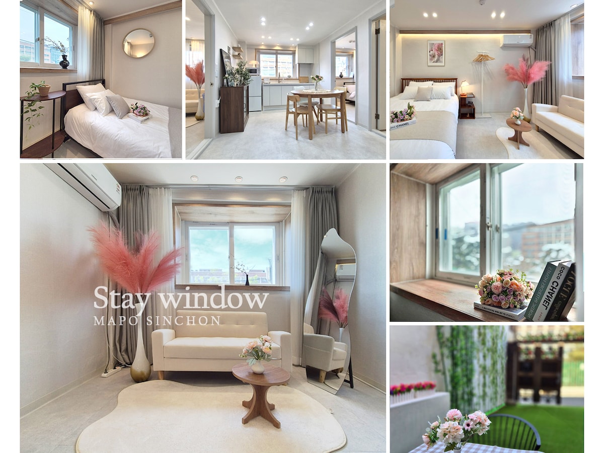 💡Structure : 2 chambres, salon, cuisine, toilettes, toit-terrasse. Spacieux pour 6 personnes Toit-terrasse 💡privé (fêtes, repas, etc.) 💡Netflix et YouTube sont disponibles Il est situé dans 💡un quartier résidentiel calme, vous pouvez donc profiter d'un repos calme et confortable. Situé près de 💡Hongdae et Sinchon : il y a une entrée de parc juste en face de l'hébergement, vous pouvez donc marcher et faire de l'exercice 💡Transports pratiques : à 5 minutes à pied de la station Hongik University, de la station Sinchon, vous pouvez facilement faire du tourisme et du shopping (à 440 m) Situé au cœur de 💡Séoul, les transports tels que les bus, les métros, etc. sont très pratiques. Nous fournissons également un service de bagagerie si 💡nécessaire. Commodités de💡 vie : il y a des restaurants et des cafés à proximité de la maison, et il y a des dépanneurs (GS25 et CU) juste à côté de la maison. De grands centres commerciaux et de grandes épiceries sont à proximité. Fournir un environnement 💡propre : nous apprécions la propreté de tous les équipements tels que la literie et les serviettes, et nous fournissons beaucoup de produits propres (Nous remplaçons toujours ce qui a été lavé par les voyageurs précédents)