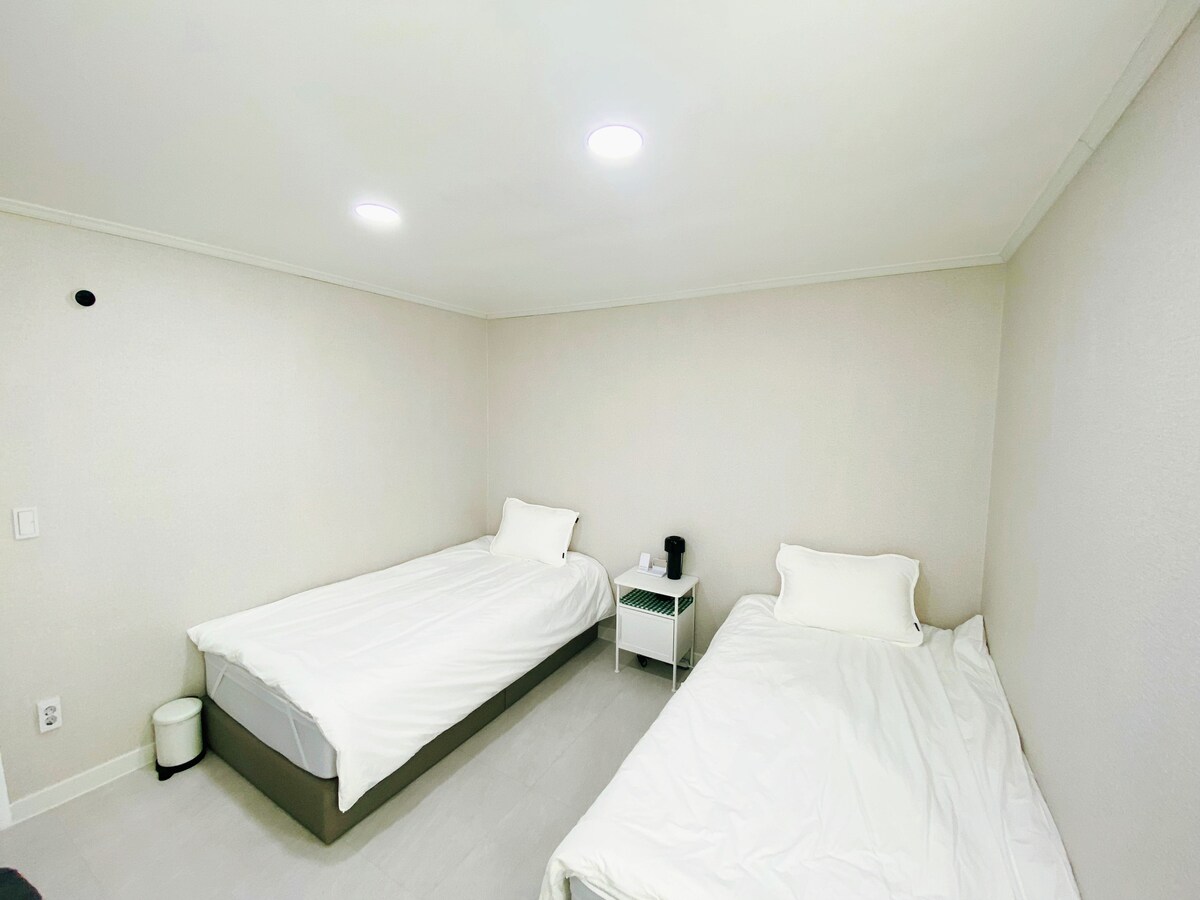 🏡[Hôtel Bella] 📍20, Sicheong-gil, Chuncheon-si, Chuncheon Bella City. 🚗stationnement Enregistrement pour le stationnement gratuit disponible : le numéro complet du véhicule est requis Configuration de la🛏️ pièce Lit queen size confortable pour un couple ou un séjour plus long La literie est systématiquement remplacée lors du nettoyage de la chambre Équipements de🍽️ cuisine Fournir de la vaisselle et des assiettes pour le nombre de personnes (X supplémentaires) Cuisinière à induction, réfrigérateur 🛏️Equipements : 1 litre d'eau minérale (2 bouteilles par nuit) Serviettes (4 par nuit fournies) Ne pas laver les → serviettes Gel pour les mains, nettoyant moussant, savon, serviette de douche Gel douche, shampoing, après-shampoing, sèche-cheveux Dentifrice, coiffeuse 📶Installations 🌐 Wifi (Internet haut débit illimité) 📺 Android TV/Netflix disponible (plate-forme uniquement) 🕓Heures d'utilisation Arrivée : 16 h (entrée sans contact) Départ : 11 h 59 Commodités à🛍️ proximité Dépanneur : environ 20 m Gare de Chuncheon, Legoland : 5 minutes en voiture À 5 minutes à pied de : Banques, centres commerciaux souterrains, shopping (Brown 5th Street), marché traditionnel, ruelle des poulets aux côtes 🍽️Restaurants et visites touristiques suggérés Des restaurants locaux peuvent être recommandés, des cours touristiques peuvent être recommandés