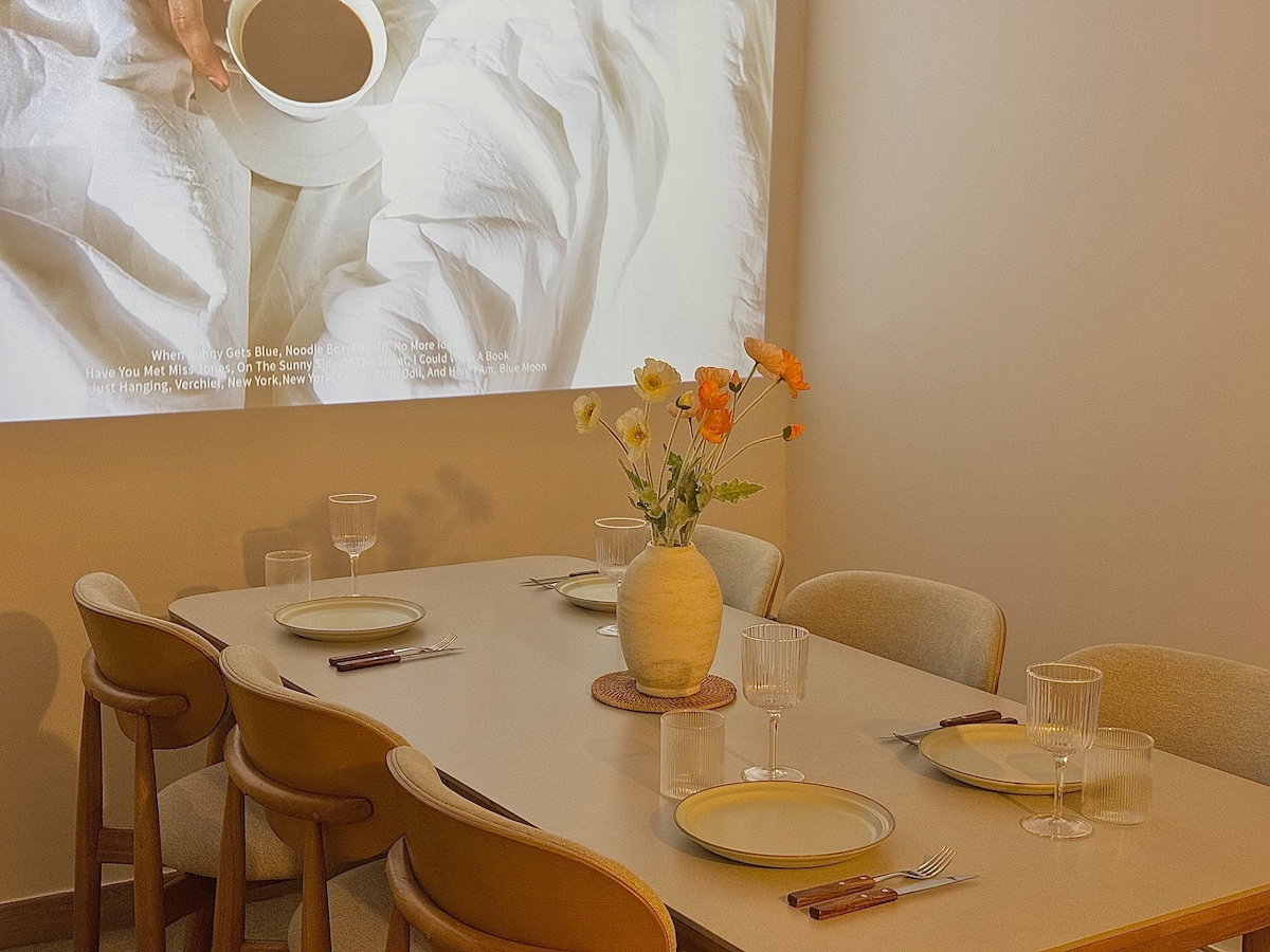 ■ Ce logement a été enregistré et exploité en tant que société de partage de logement légale en raison de la spécialisation Mystament. ■ C'est un espace qui peut être utilisé de manière pratique en étant situé juste à côté de Seomyeon, le centre de Busan, et de Jeonpo, qui est chaud ces jours-ci.(3 minutes à pied de la sortie 1 de la gare de Jeonpo) Le salon dispose d'une platine pour profiter de la musique, d'une enceinte Marshall et d'une grande étagère. De plus, un projecteur avec un grand écran est fourni comme si vous étiez dans une salle de cinéma. (Netflix, Youtube Premium) L'espace chambre est d'un ton beige chaleureux pour offrir du confort. La salle de jeux est équipée d'une Nintendo Switch dont vous pourrez profiter avec vos amis et vos proches dans un joli intérieur avec des objets verts dans un siècle moderne. Une grande salle de bain est prévue pour une utilisation pratique, et la cuisine est également jolie avec un joli réfrigérateur et les derniers appareils électroménagers. La zone autour du logement est incroyablement calme et privée, car elle est située entre Seomyeon et Jeonpo.