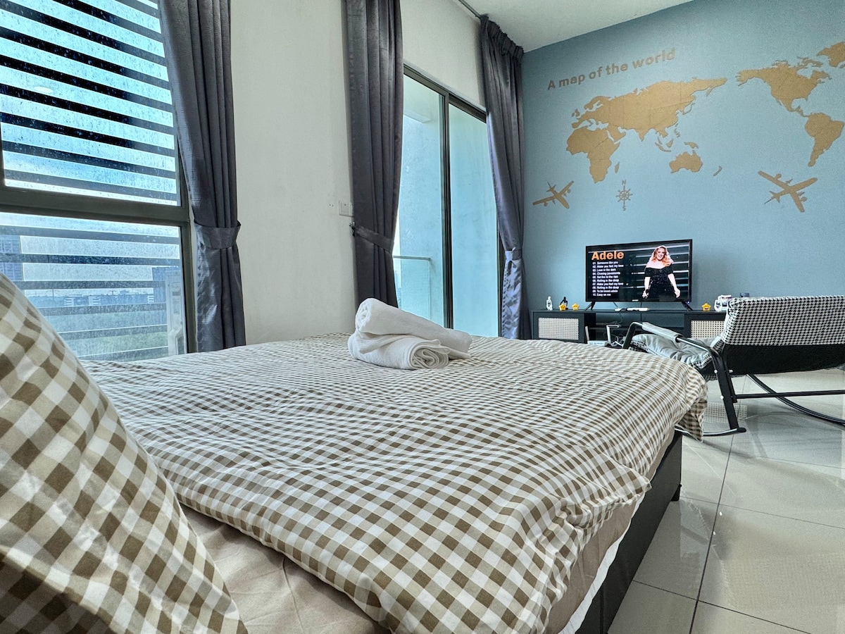 Arrivée autonome super facile. Détendez-vous et profitez du fauteuil de massage fourni (paiement à l'utilisation) ! Beaucoup de restaurants et de magasins à proximité à distance de marche. Dpluze Mall Cyberjaya est à seulement 5 minutes. À 1 km de MMU Cyberjaya. À 2 km de l'hôpital Cyberjaya. À 15 minutes en voiture de Putrajaya. À 25 minutes de l'aéroport KLIA. À 15 minutes du parc aquatique SplashMania. Séjour parfait jusqu'à 3 personnes. Cependant, ce logement est si spacieux qu'il peut accueillir jusqu'à 5 personnes si vous apportez votre propre matelas.