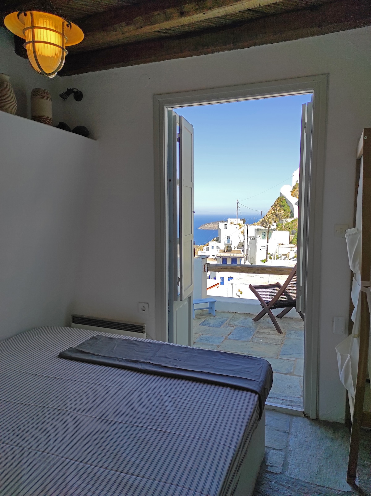 Ma maison est une vieille petite maison de deux niveaux avec une architecture traditionnelle des Cyclades rénovée en 2019, coincée dans les ruelles de la vieille et bien préservée capitale de l'île de Sérifos, nommée Chora. En raison de sa topographie et du réseau complexe de ruelles étroites, aucun véhicule n'est autorisé, seulement des mules. Cela en fait un emplacement idéal pour les voyageurs qui apprécient la simplicité et l'authenticité, combinées avec le calme et une vue panoramique splendide sur la mer Égée, loin du port bruyant de Livadi.