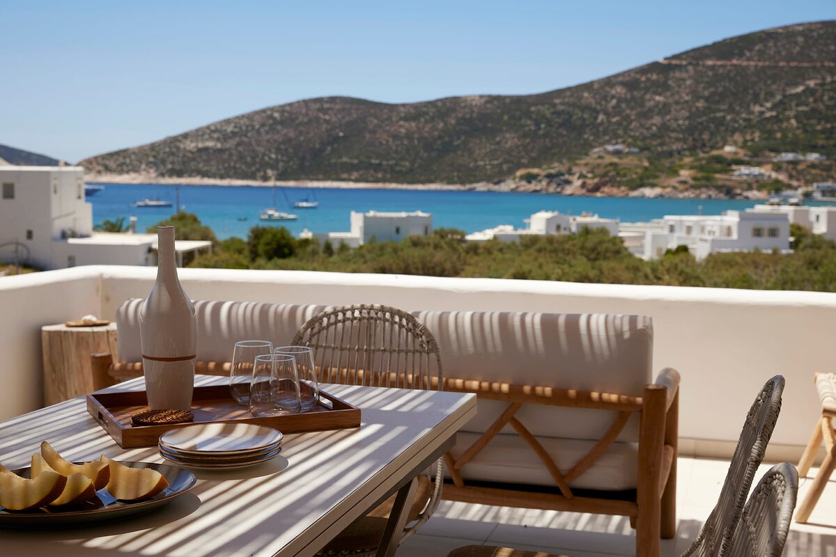 Situated at the serene end of the traditional Cycladic village of Vathi, just few steps away from the beach. Sea-fnos beach house offers a unique breathtaking panoramic view of the port of Vathi to be enjoyed from the two private verandas. The magnificent view to the sea, the homely atmosphere combined with discreet luxury and the privacy provided at the spot, make this holiday house an ideal destination!