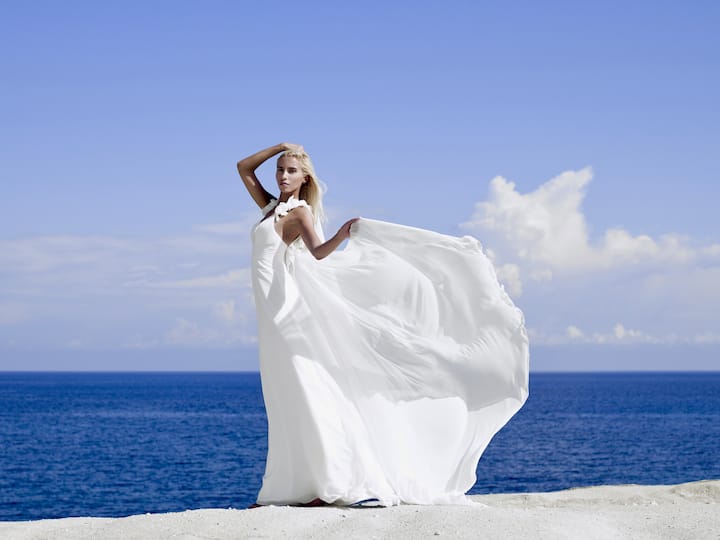 Sentez-vous comme une déesse lors d'une séance photo en robe volante sur la plage emblématique de Sarakiniko. La robe fluide, le paysage blanc spectaculaire et la mer turquoise créent la toile de fond parfaite pour de superbes photos cinématographiques et des séquences de drones. Mon équipe et moi étions là pour créer ce moment à couper le souffle pour Vous !