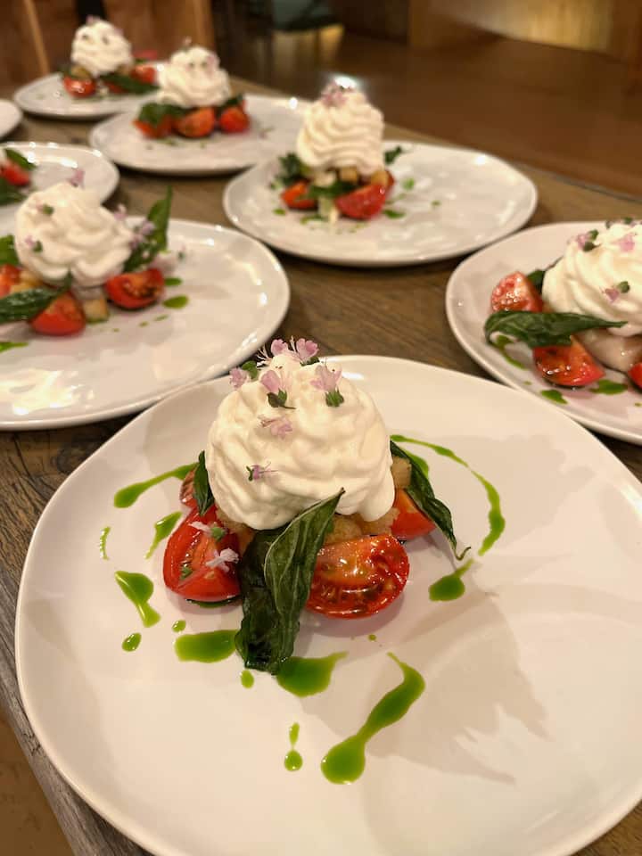 Un menu dégustation haut de gamme commençant par un amuse-bouche surprise, suivi d'une entrée légère, d'une entrée plus copieuse, d'un plat principal et d'un dessert. Élaborée avec des saveurs de saison de la côte ouest et une inspiration européenne classique. Comprend une installation de luxe complète avec de la vaisselle, des menus personnalisés et des serveurs pour guider la soirée. Boissons non incluses.