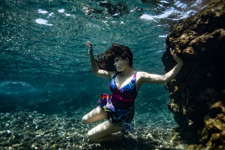 Profitez d'une séance photo de portrait en apnée dans les eaux claires de Tenerife. Je vous propose une courte formation avant la séance photo, je vous guide tout au long de la séance et je vous remets les meilleures photos sous-marines retouchées.