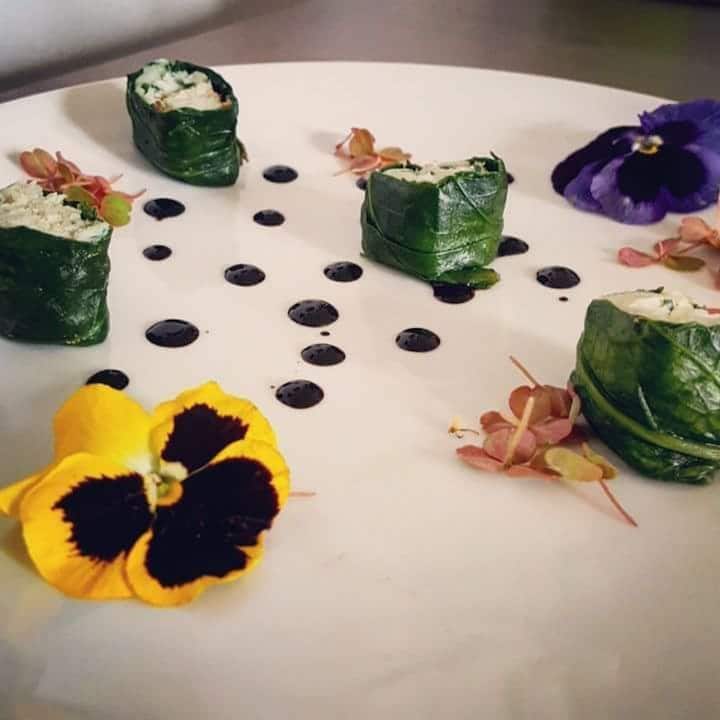 La prestation, préparée à domicile, propose 4 mises en bouche, 2 entrées et 2 plats à choisir.