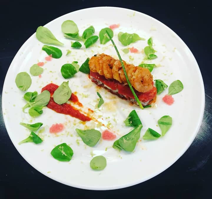 Ce menu complet à domicile comprend une entrée un plat et un dessert. Il est construit à partir de produits frais et locaux. La formule comprend le dressage, le service, le rangement et le nettoyage des lieux.