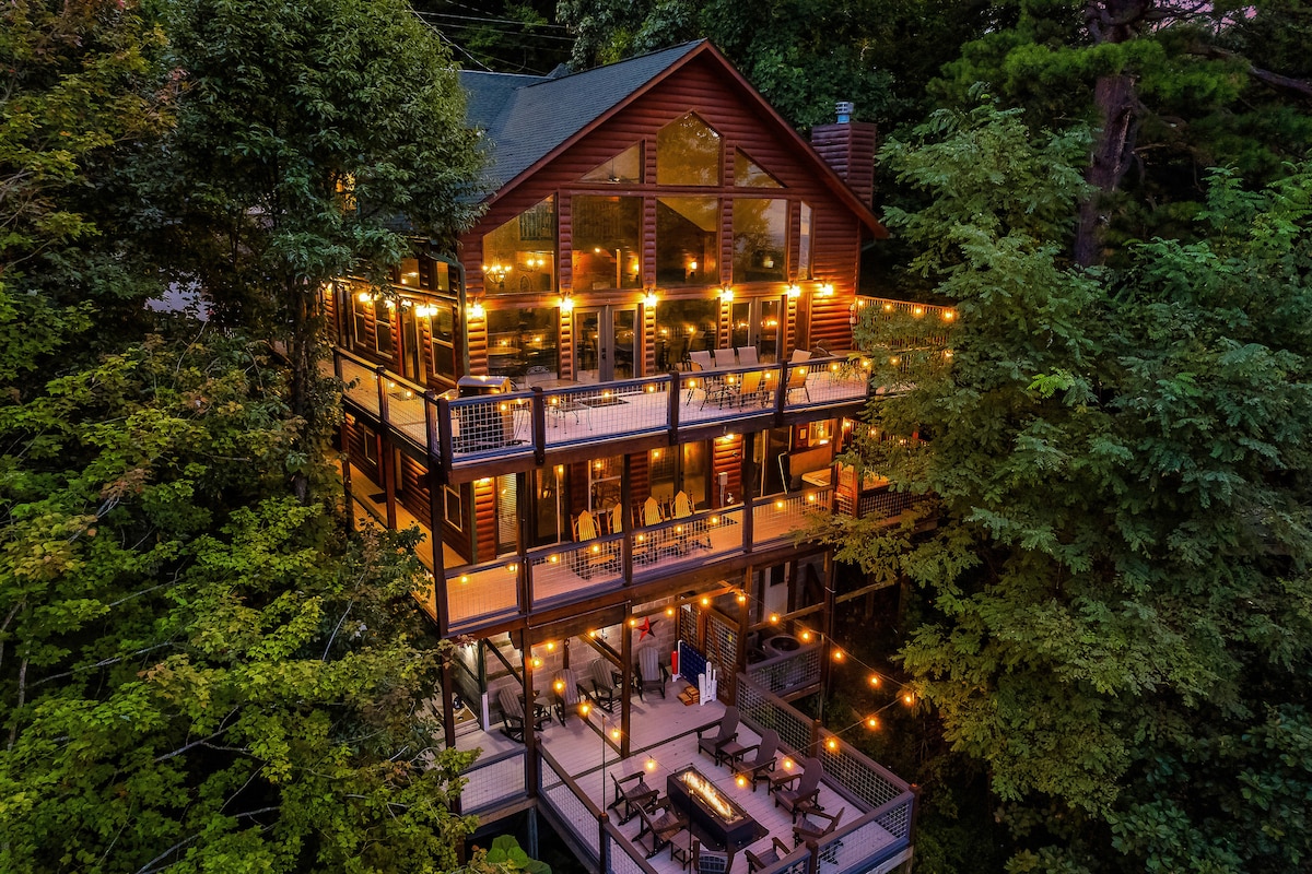 Une cabane en rondins à plusieurs niveaux à couper le souffle est nichée dans une station de montagne pittoresque, offrant une vue imprenable sur les monts Great Smoky. À l'intérieur, la cabane dispose d'un plan lumineux et ouvert avec une cuisine complète, un lit King Size luxueux, une salle de jeux avec un loft et deux terrasses avec un jacuzzi luxueux. Les voyageurs auront également accès au complexe, y compris à une piscine (saisonnière) et à une salle de sport (saisonnière). La cabane se trouve à quelques minutes de Pigeon Forge et de Dollywood, avec une abondance de restaurants, de magasins et d'attractions.