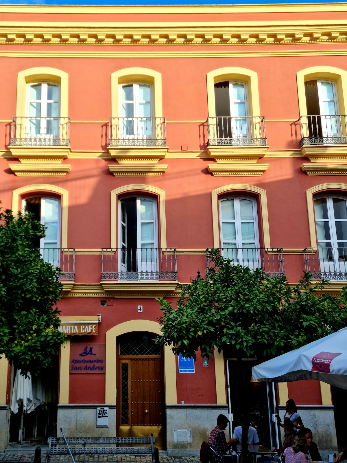 Notre bâtiment est l'ancienne église du couvent de Santa Maria de La Passion, construite au XVIe siècle, et fait partie de la riche histoire de Séville. Il a été rénové pour le confort et le plaisir de ses invités, mais en préservant les murs et les arches d'origine qui peuvent être vus dans les chambres et dans différents coins du bâtiment.