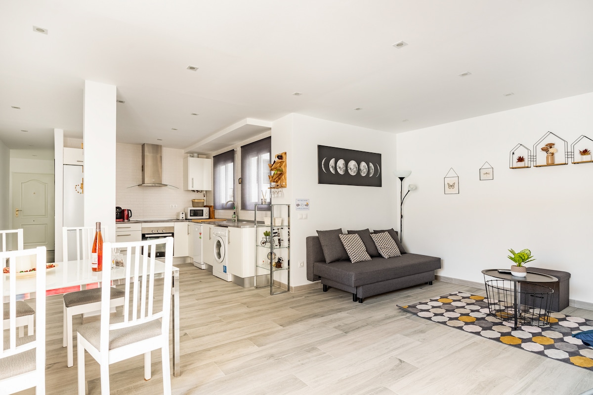 Incroyable péniche avec terrasse privée avec jacuzzi et garage pour voiture électrique inclus dans le prix, deux chambres situées au cœur de Séville, dans un bâtiment moderne, au troisième étage (avec ascenseur). Toutes les pièces sont climatisées à froid/chauffage. Cuisine complète avec four. Situé dans le quartier central d'Alameda de Hercules, plein de bars, restaurants, supermarchés, magasins locaux, etc. Garage inclus pour les voitures électriques (schuko Europlug). Arrivée tardive gratuite (accès automatique).