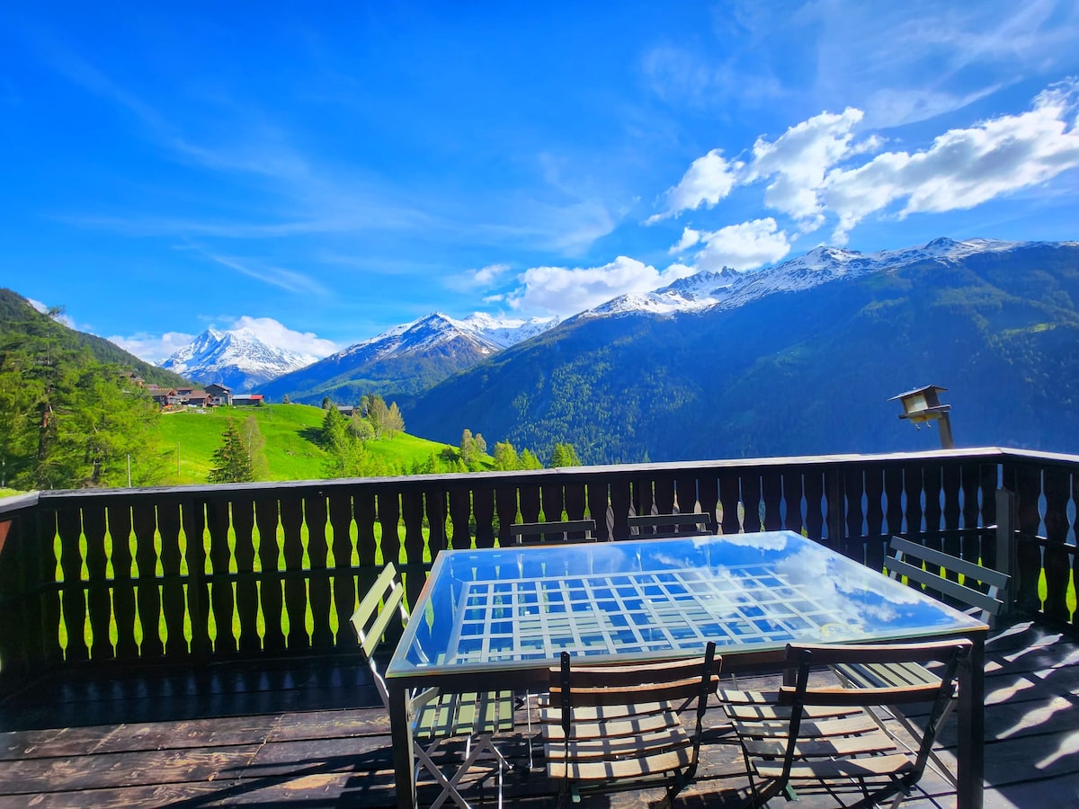Un foyer pour faire du FEU à l'extérieur !...ou à l'intérieur ! Le calme de la montagne, la proximité des stations de ski, l'authenticité d'un habitat vivant et naturel, un jardin terrasse et des pâturages, une nature préservée et des panoramas majestueux. Le chalet à été transformé en 2011 à partir d'une grange-écurie typique du Valais ; des murs en madrier sur un soubassement de pierres.