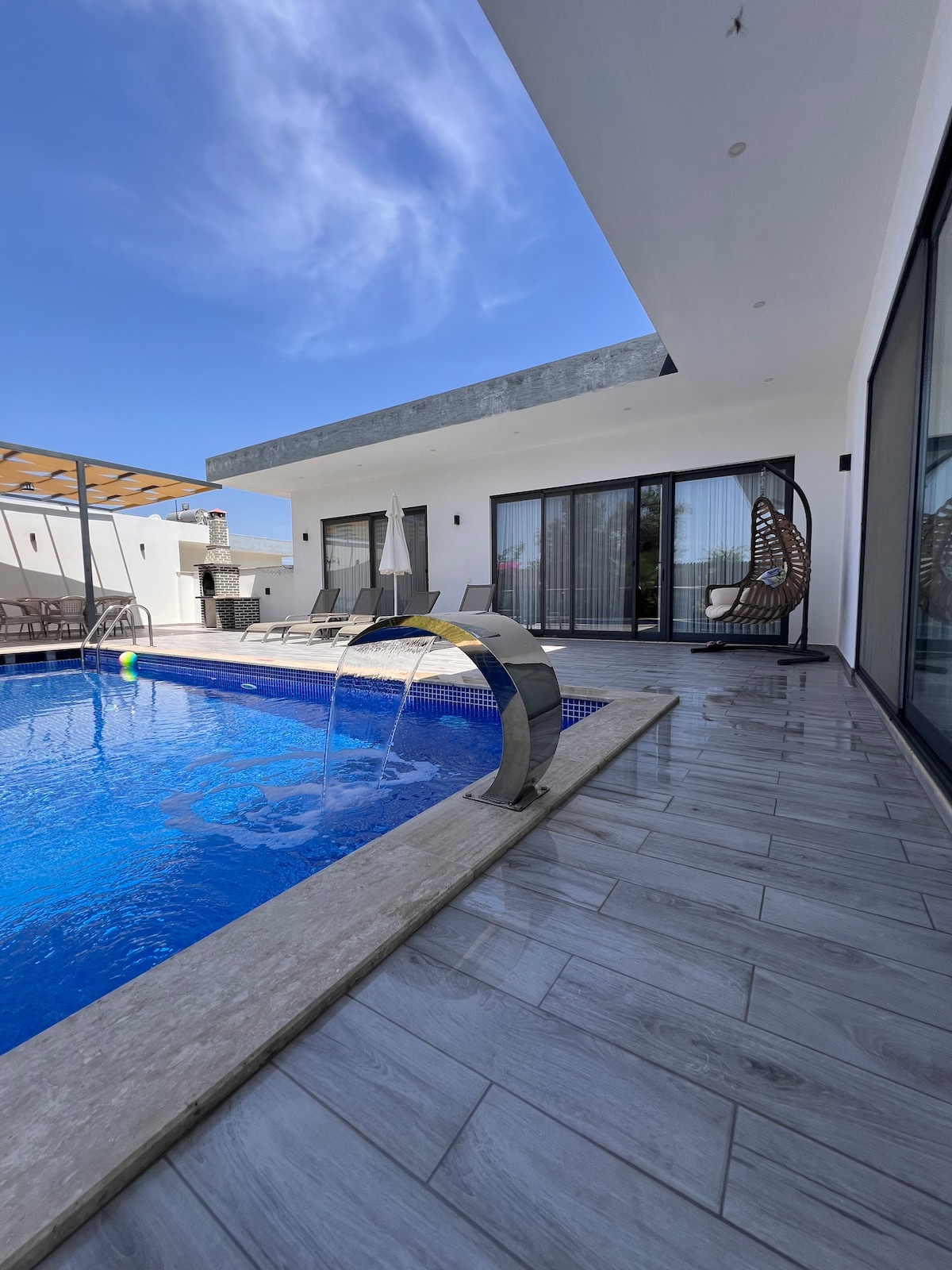 Ce logement unique est proche de tous les sites et commodités, ce qui facilite la planification de votre visite. INFORMATIONS SUR LA VILLA Salon : WC + douche, climatisation, télévision 1ère chambre : 1 lit double, WC + douche, climatisation 2ème chambre : 2 lits simples, toilettes + douche, climatisation 3ème chambre : 1 lit double, toilettes + douche, climatisation, télévision, jacuzzi Grâce à son charmant jardin luxuriant et à sa piscine bien protégée, c'est une option spéciale pour les vacanciers conservateurs, 6 personnes peuvent facilement séjourner dans notre villa.