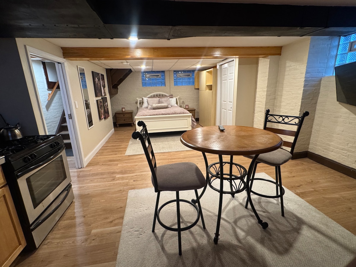 🗺️ Studio sur le thème des cartes • Pour 2 personnes ✨ Entièrement rénové • Propre + moderne ☕ Kitchenette • Cafetière • Micro-ondes et Instapot 📺 Télévision connectée Roku + applications de streaming 🚗 Stationnement hors rue pour voitures de taille moyenne (1 place) 📍 10 min de la Cleveland Clinic + University Circle Le confort moderne rencontre le charme des voyages dans ce studio inspiré des cartes, conçu avec soin et idéalement situé près des meilleures attractions culturelles de Cleveland.