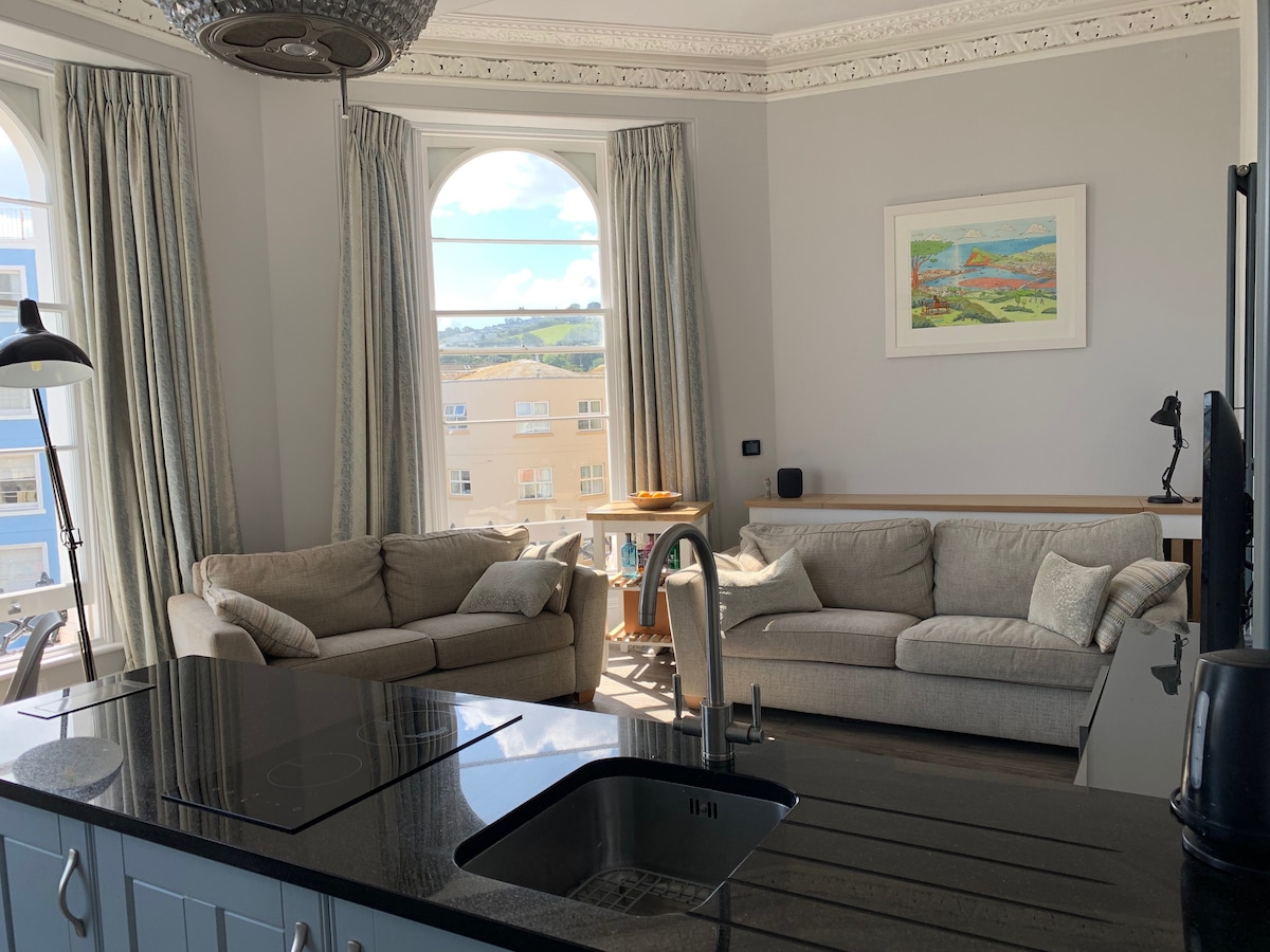 Un appartement élégant d'une chambre récemment rénové, à moins de 100 mètres de deux plages de sable et dans le centre de Teignmouth. Le bâtiment est situé sur le front de mer et se trouve à 2 minutes à pied de cafés pittoresques, de restaurants, de bars, de boutiques indépendantes, de galeries d'art, de parcs et de la gare. L'appartement peut accueillir deux personnes et est idéal pour les couples, les amis ou les professionnels. C'est une excellente base d'où explorer Teignmouth, Shaldon et les magnifiques régions environnantes à pied ou en voiture.