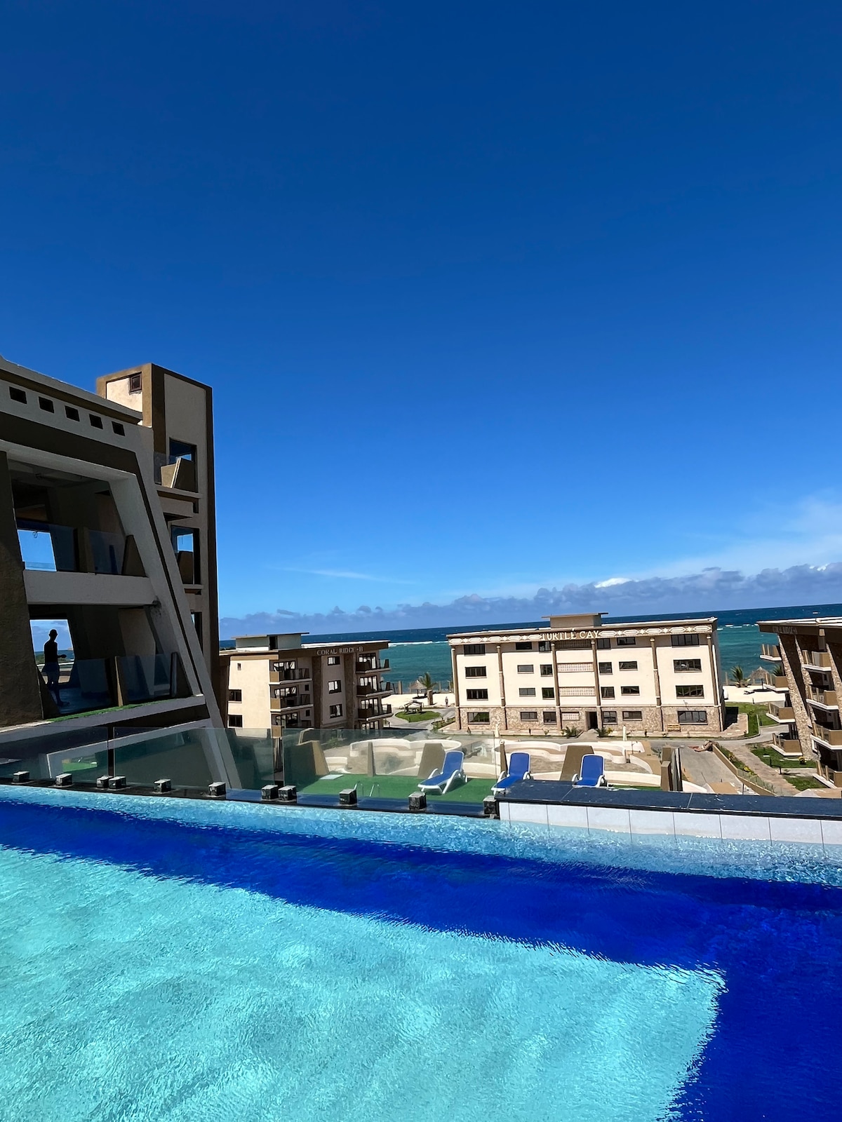 Évadez-vous dans ce luxueux appartement de 2 chambres avec vue sur la mer à Nyali, avec une vue imprenable sur l'océan et une brise marine rafraîchissante. Chaque chambre est équipée de la climatisation et de ventilateurs de plafond pour assurer votre confort. La climatisation est facultative et nos invités sont gratuits à utiliser moyennant des frais supplémentaires (PAYABLES sur PLACE). Il y a une piscine sur le toit qui offre une vue panoramique sur 3 belles plages.