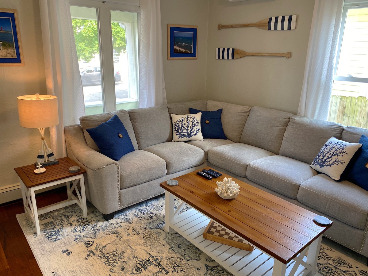 Profitez d'une journée ou d'une semaine pour les couples ou les familles dans cette maison de plage magnifiquement rénovée à seulement un pâté de maisons du lac. Profitez de la cour avec pergola et jacuzzi pour 2 à 6 personnes TOUT L'HIVER ! Regardez le lever et le coucher du soleil depuis le balcon principal du deuxième étage. Marchez jusqu'au lac et au hêtre juste de l'autre côté de la rue. Proche centre ville et parcs. Ce logement de trois chambres fera forte impression. Décoré avec goût de façon saisonnière. Grande salle de bain avec baignoire profonde. Pour les chasseurs de trésors, un détecteur de métaux pour s'amuser en famille à la plage.