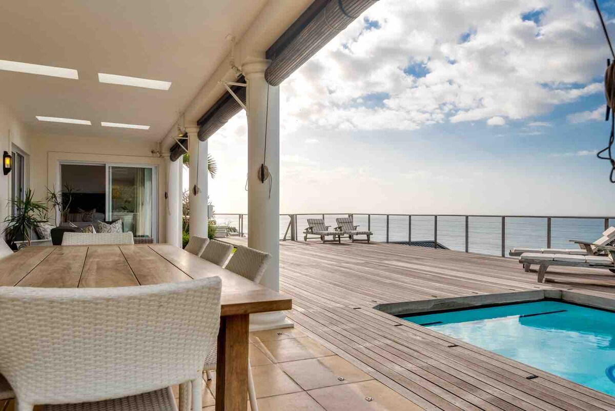 « Confortable » décrit à peine l'ambiance éclectique de cet appartement magnifique situé directement sur la plage, le caractère chaleureux et accueillant de ce petit bijou transparaît, vraiment les meilleures places de la maison pour regarder les dauphins et les baleines s'ébattre dans la mer et surfer en contrebas. Profitez d'un charmant barbecue extérieur qui rappelle une place de village italienne. Inclus pour votre plaisir et votre commodité : Netflix, Showmax, Wi-Fi fibre, lave-linge, lave-vaisselle. ON NE PEUT PAS FAIRE MIEUX !