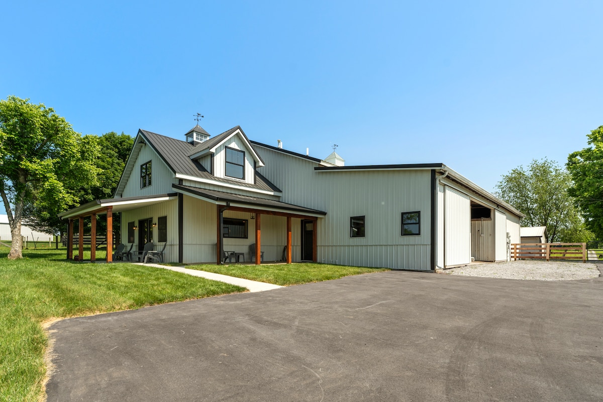 Séjournez et soyez ravis de cette maison d'hôtes de deux étages récemment rénovée qui jouxte notre écurie de 11 stalles. Encadrée par des porches couverts et des arbres d'ombrage, notre maison d'hôtes est un endroit merveilleux pour vous détendre pendant votre séjour dans le magnifique Kentucky central. Le meilleur des deux mondes : un cadre rural agréable situé à seulement quelques minutes de l'autoroute, ce qui facilite les déplacements vers Churchill Downs, le parcours de golf de Valhalla et d'autres attractions à proximité de Louisville et de Frankfort.