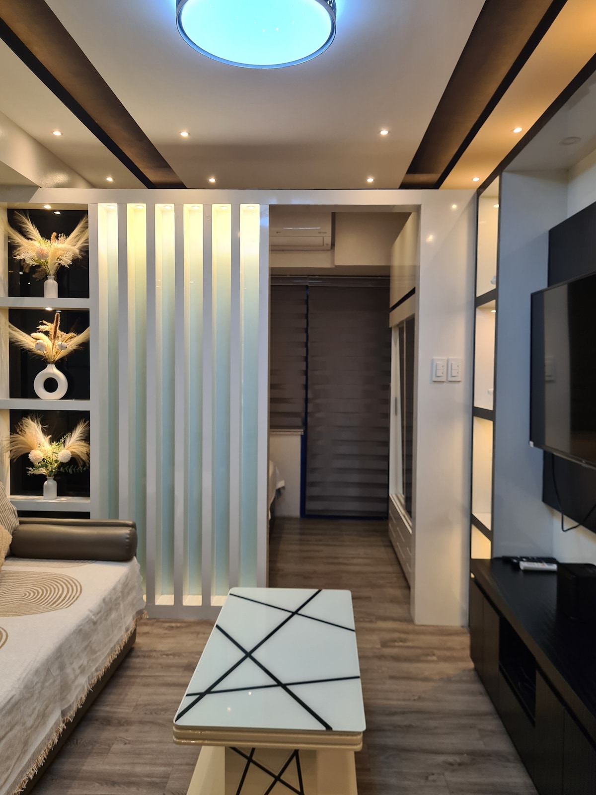 Bienvenue dans notre élégante suite avec arrivée autonome. Avec une serrure intelligente numérique pour une entrée sans clé, vous pouvez accéder sans effort à ce logement entièrement conçu en intérieur. L'attrait esthétique de la suite ne manquera pas de captiver vos sens. Situé au cœur du Mall of Asia, vous trouverez de nombreux centres commerciaux et restaurants à proximité. Notre propriété dispose de superbes lobbies de style hôtel et d'équipements luxueux pour votre confort et votre détente.