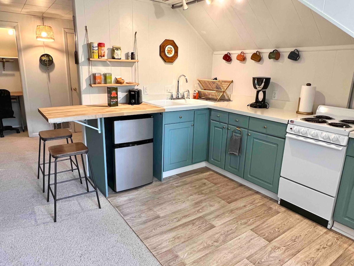 Impossible d'oublier le cadre paisible de cette destination à la campagne. Il est peut-être petit avec 375 pieds carrés, mais il dispose de toutes les caractéristiques de la plupart des hôtels avec un lit queen size et un lit complet dans le loft. Situé près du centre-ville de Springfield, de l'Illinois et de nombreuses attractions d'Abraham Lincoln. Les cerfs se promènent souvent dans la propriété qui est située dans une rue résidentielle calme et sans issue. La cuisine dispose de tout ce dont vous avez besoin pour cuisiner. Beaucoup de serviettes, de savon, de shampoing et d'oreillers supplémentaires. Regardez Netflix, Hulu et Disney aussi.