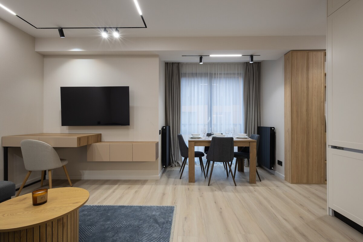 Bienvenue dans ce studio lumineux et confortable, parfaitement situé à New Gudauri. Emplacement calme, parking privé gratuit et en même temps très proche de tout (supermarché, pharmacie, cafés, bars et les meilleures pistes de ski). L'appartement offre un mélange harmonieux de confort moderne et d'ambiance chaleureuse. Avec un lit confortable, un canapé douillet, une cuisine bien équipée et une salle de bains moderne, il a tout ce dont vous avez besoin pour vous détendre et vous ressourcer.