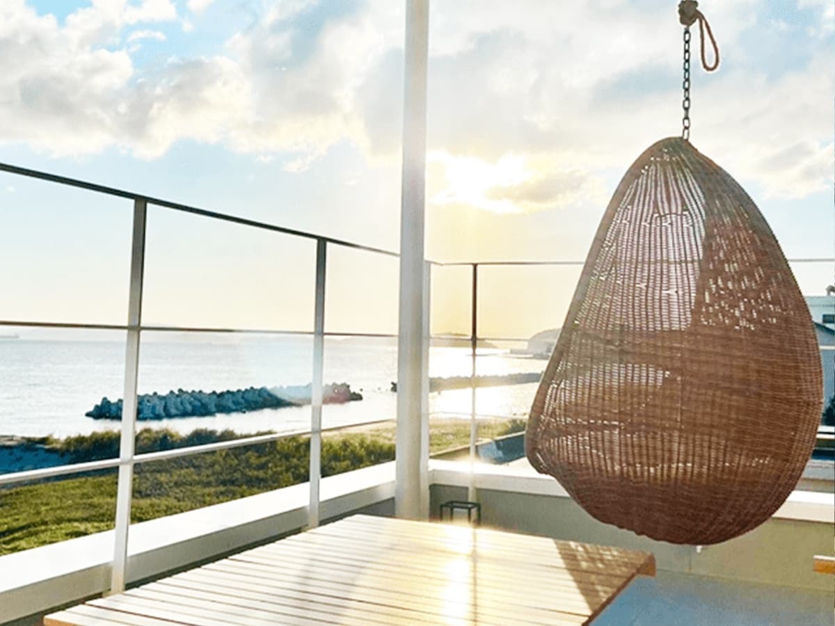 Un voyage de détente dans une maison ouverte située sur une colline surplombant la mer intérieure de Seto