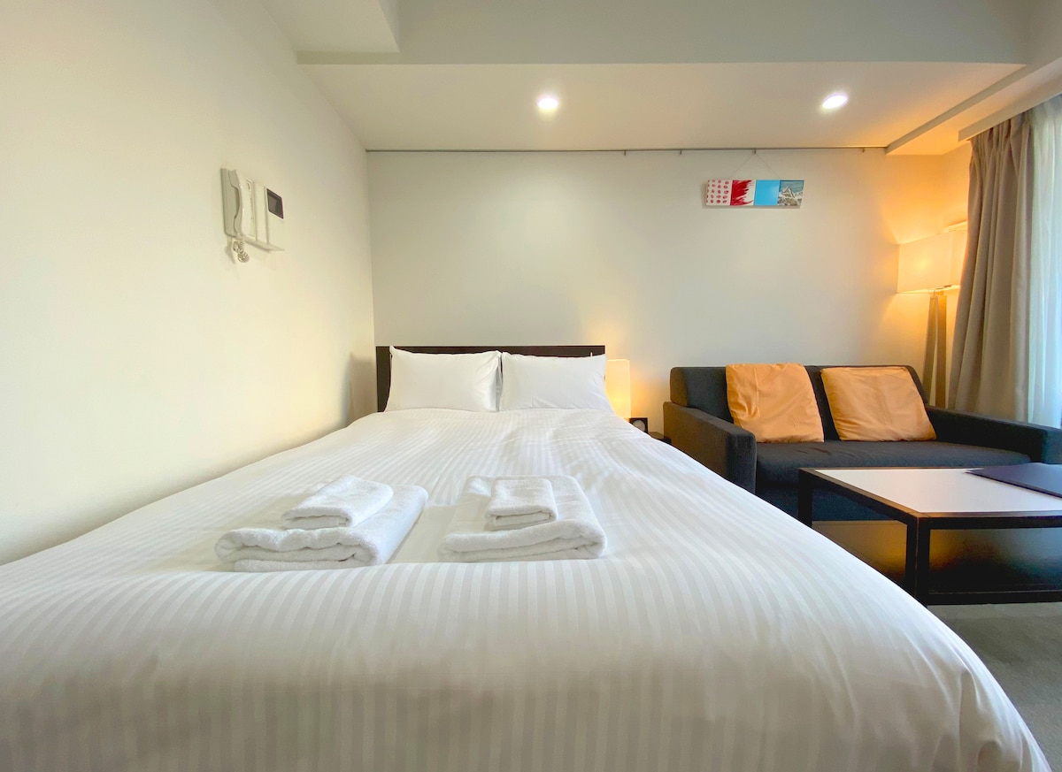 Experience the feel of a standard-sized Tokyo apartment in this deluxe studio for 2. Enjoy restful nights on a queen-sized bed and a functional layout ideal for remote work. Whether you're balancing work and wellness or simply unwinding, this space is a great urban sanctuary.