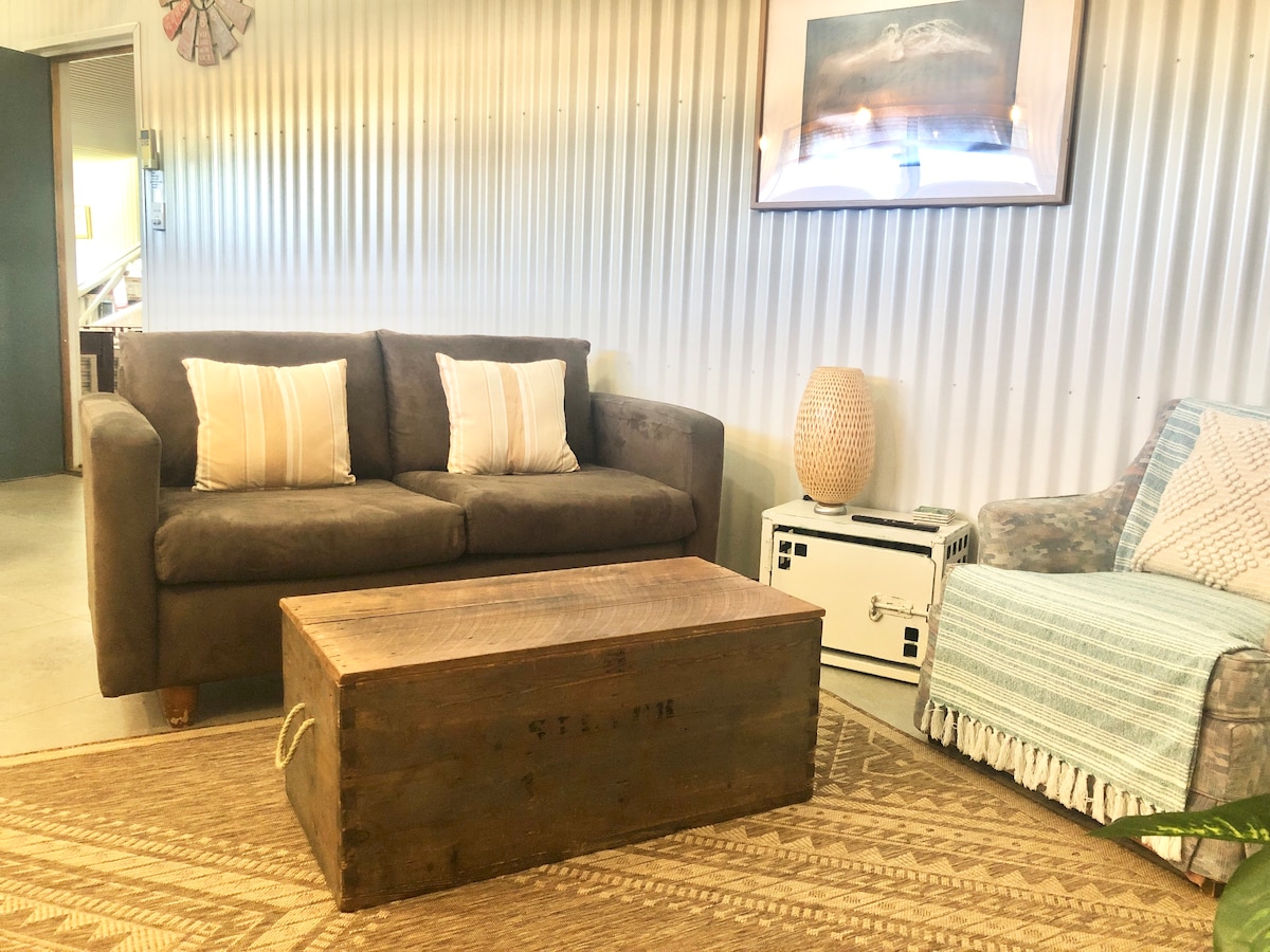 Nous sommes au centre, à distance de marche de tous les restaurants locaux, des pubs, de la location de surf et de snorkeling, du magasin de tacles et de la location de voitures. Le Loft est entièrement autonome, avec son propre accès, séparé du reste de notre maison, ce qui est différent d'une conversion de hangar industriel. Nous sommes à distance de marche de notre centre-ville et de notre plage locale. Nous espérons que vous apprécierez de vous détendre ici après vos journées d'exploration d'Exmouth. Notre propriété est située derrière une entreprise touristique locale et le stationnement est sûr juste à l'entrée du Loft.