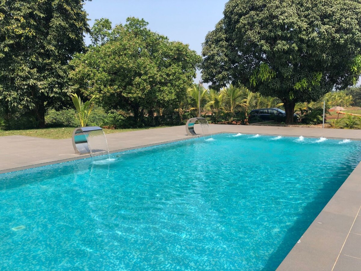 3BR - StayVista @Rustic Haven avec piscine, terrasse et barbecue