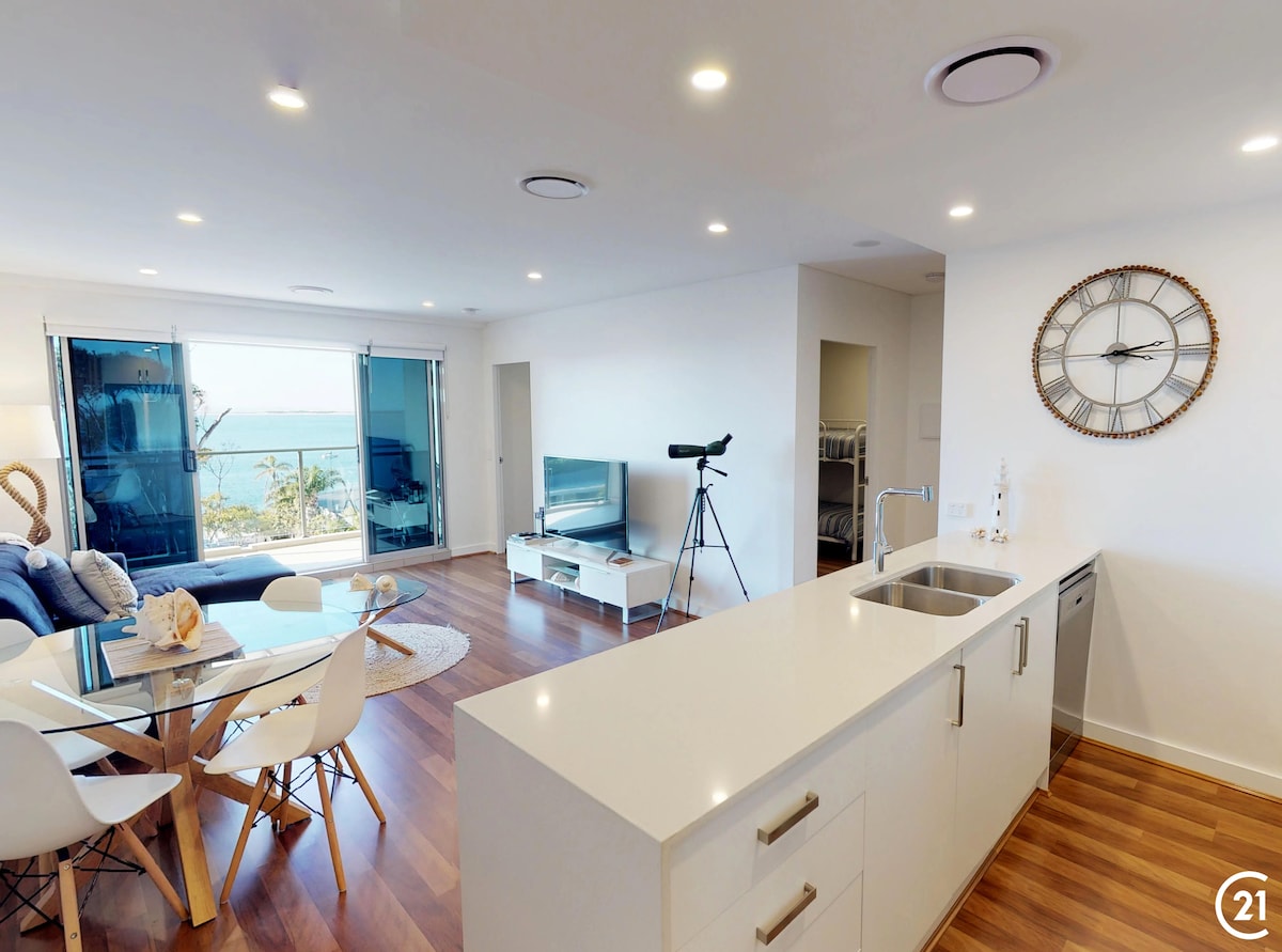 Vue imprenable. Pas de marches pour accéder à l'unité et pas de marches à l'intérieur. À quelques minutes à pied de la plage, à proximité du CBD, du centre commercial, de la marina et des restaurants. Rénovation neuve par un constructeur de qualité primé et un architecte d'intérieur spécialisé. Immaculée et conçue pour profiter de la vue panoramique à couper le souffle sur Nelson Bay. Blue Bay Views 1 (en bas) et Blue Bay Views 2 (en haut) sont deux logements Airbnb privés et séparés.