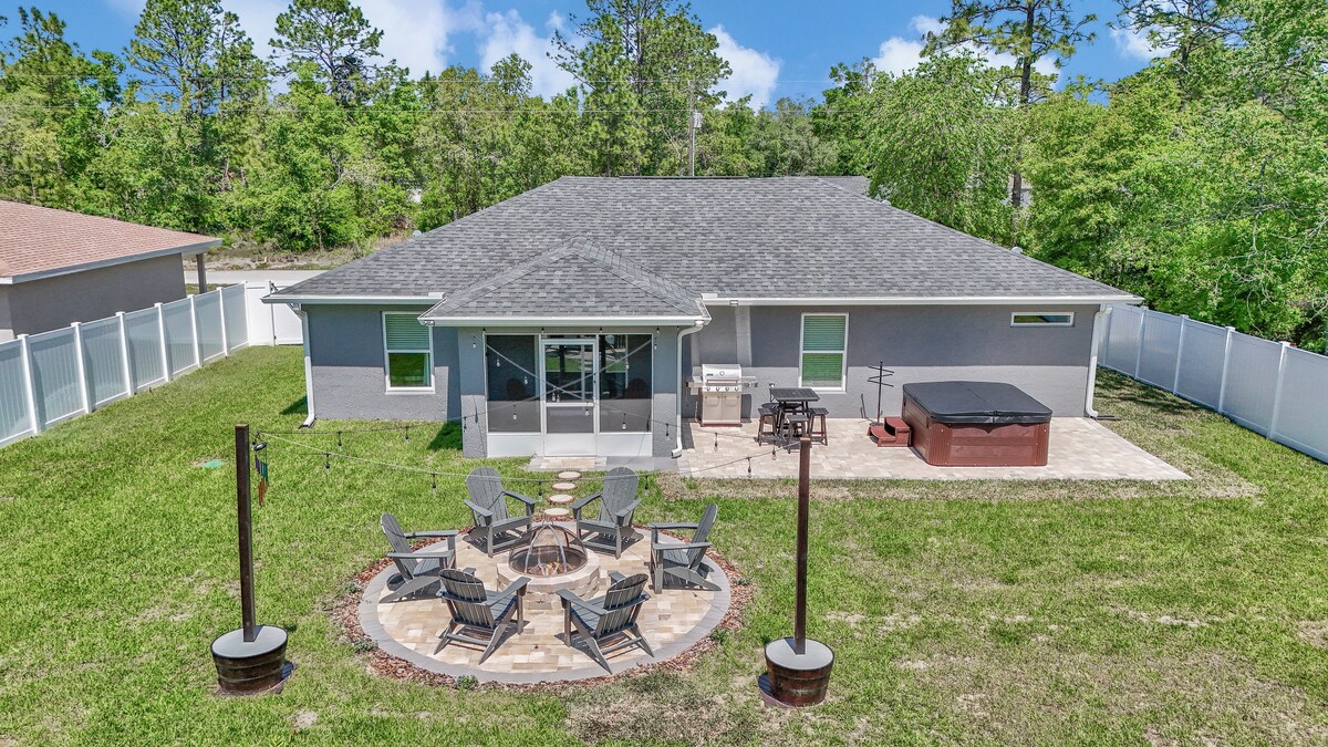À 5 min du World Equestrian Center, cette maison se trouve dans une communauté prestigieuse nichée dans nos chênes verts locaux. Cette propriété unique combine tout ce qu'Ocala a de mieux à offrir, la combinaison du pays des chevaux, des couchers de soleil incroyables et des équipements haut de gamme. Profitez de la cour arrière spacieuse avec sièges, foyer et plus encore. Cette maison de 3 chambres avec lit King Size, 3 salles de bains, 4 lits pliants portables, 2 salons et une grande cuisine offre un séjour confortable dans une maison accueillante avec de nombreuses activités à proximité.